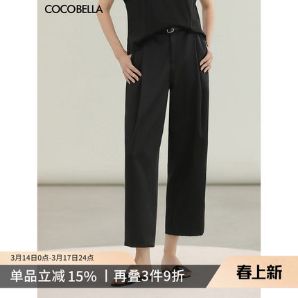 COCOBELLA轻奢仿醋酸休闲裤女雾面缎垂坠气质九分哈伦裤PA3079-3