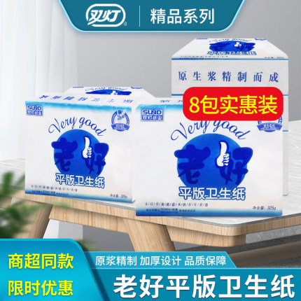 双灯老好平板卫生纸厕纸325克8包加厚家用老式厕所草纸纸巾实惠装