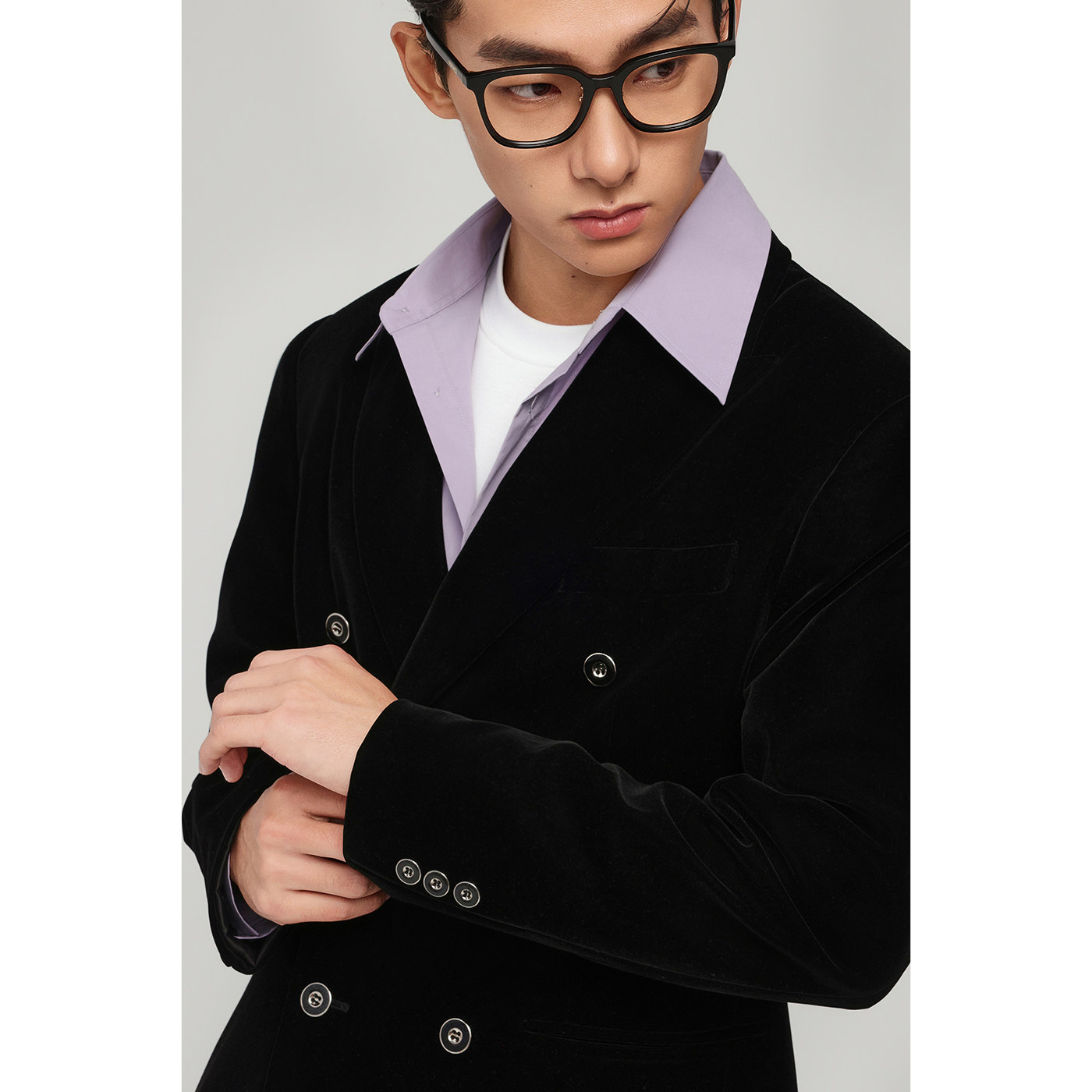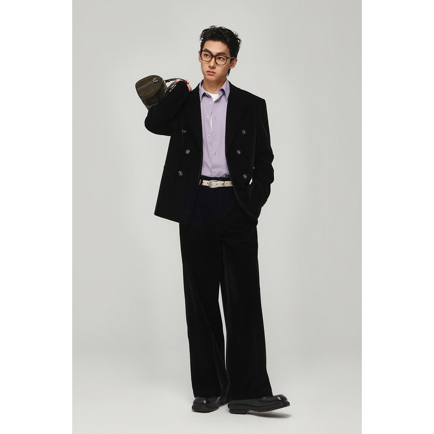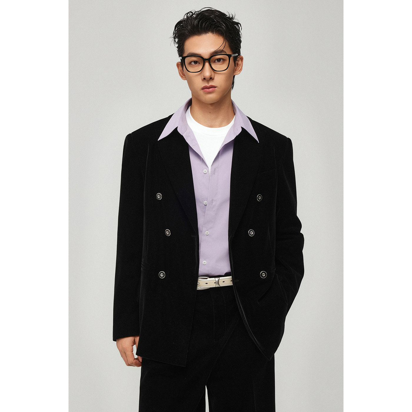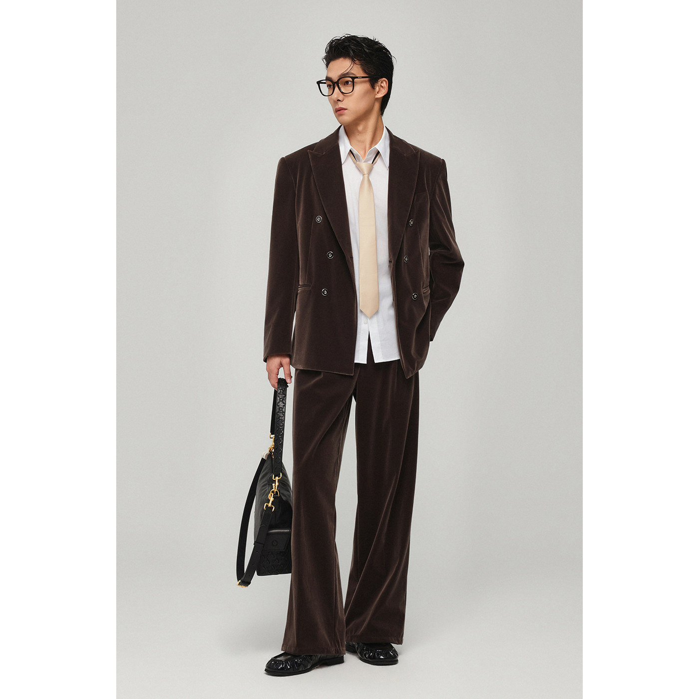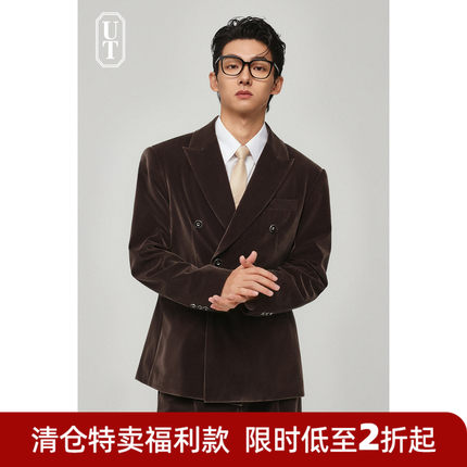 丝绒感休闲西服男收腰款戗驳领春季小西装外套宽松高级感帅气单西