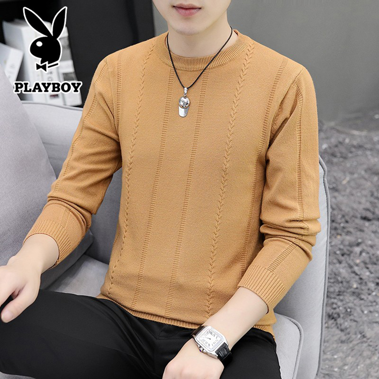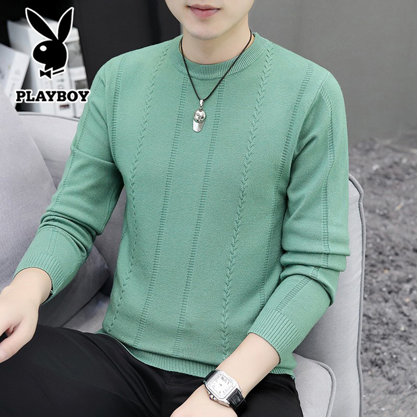 花花公子薄款毛衣男士春秋季潮流百搭圆领修身休闲打底针织衫t恤