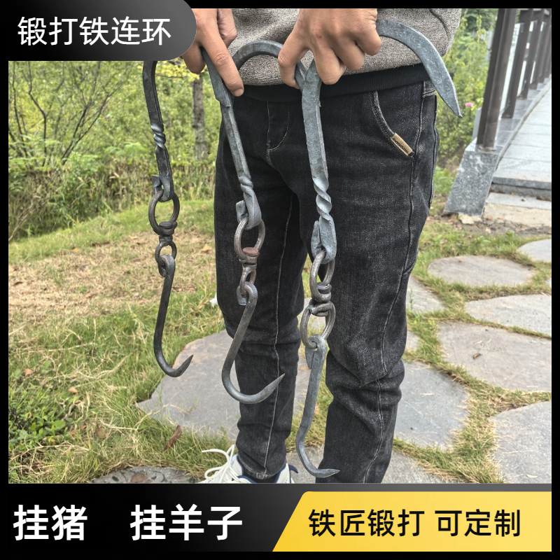 锻打手工连环挂钩承重猪肉牛肉钩挂屠夫钩子加粗商用挂肉专用老式