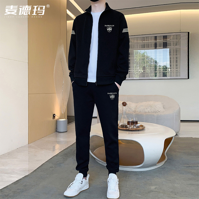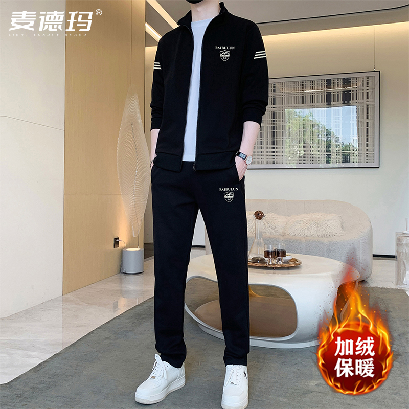 运动套装男士秋冬季新款简约时尚开衫外套长裤帅气搭配休闲两件套