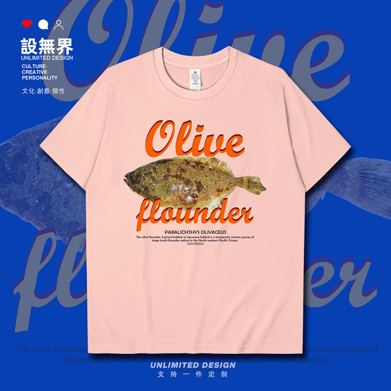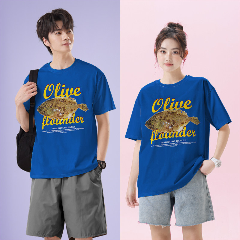 鱼类图案潮牌比目鱼潮酷短袖T恤男女学科宽松体恤纯棉夏装设 无界