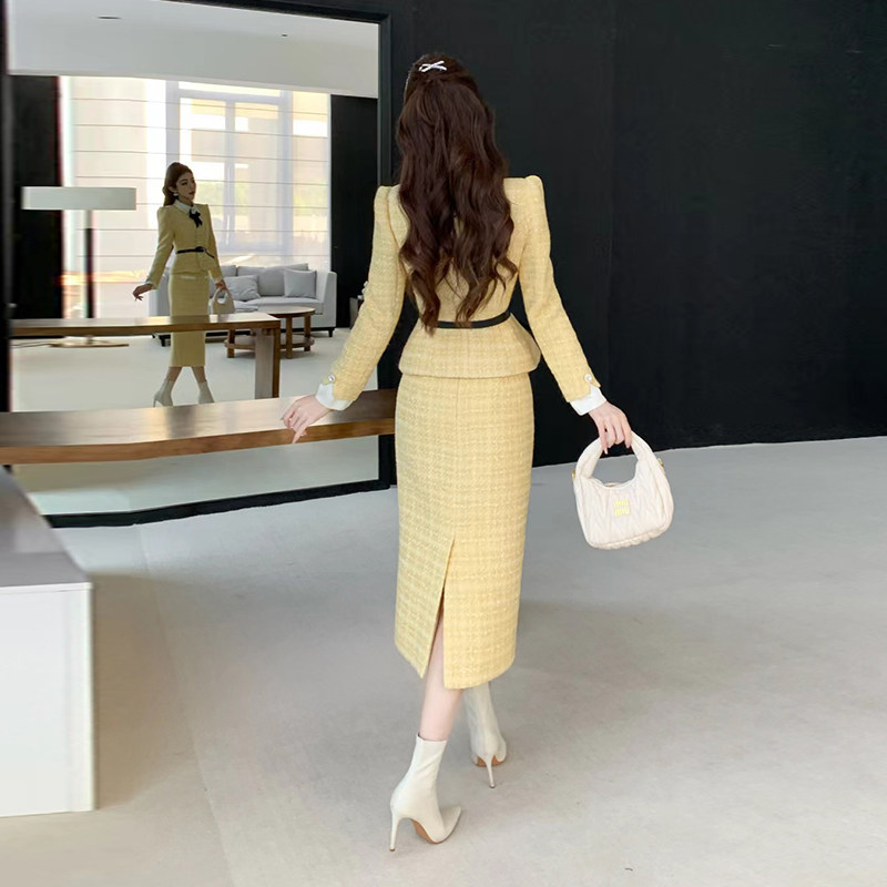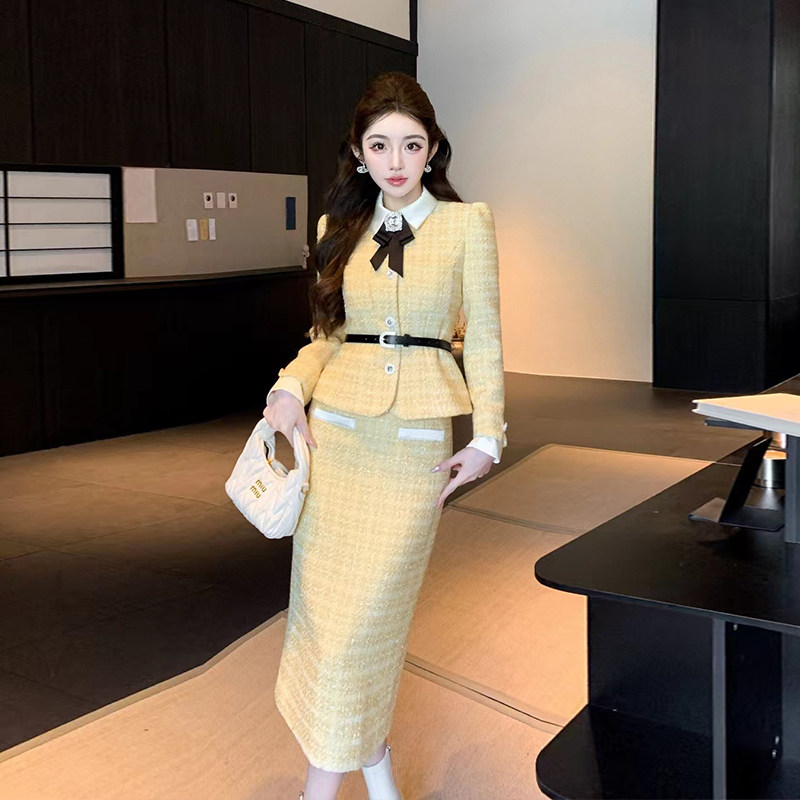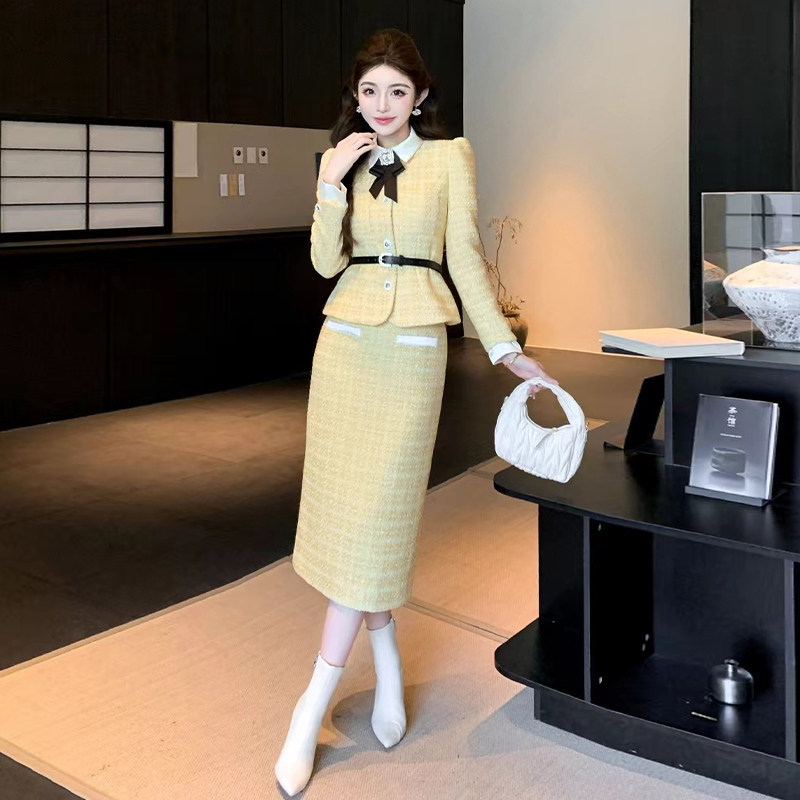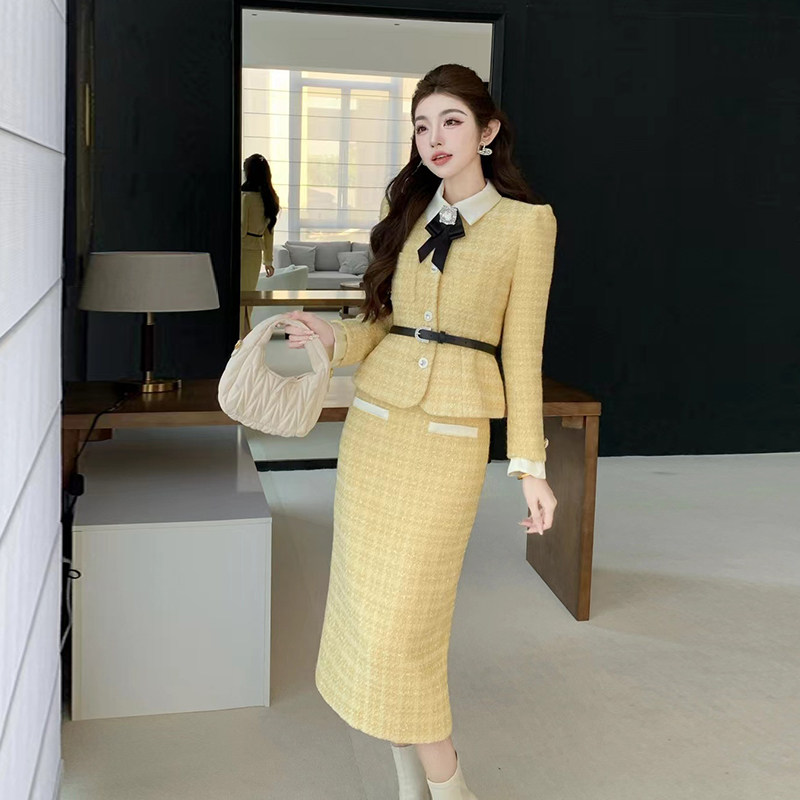 麦果时尚小香风蝴蝶结外套半身裙套装女秋冬气质名媛高级感两件套