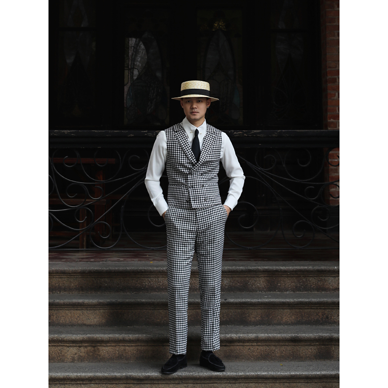英伦复古双排扣雅痞绅士主持时髦经典千鸟格修身结婚新郎西装马甲