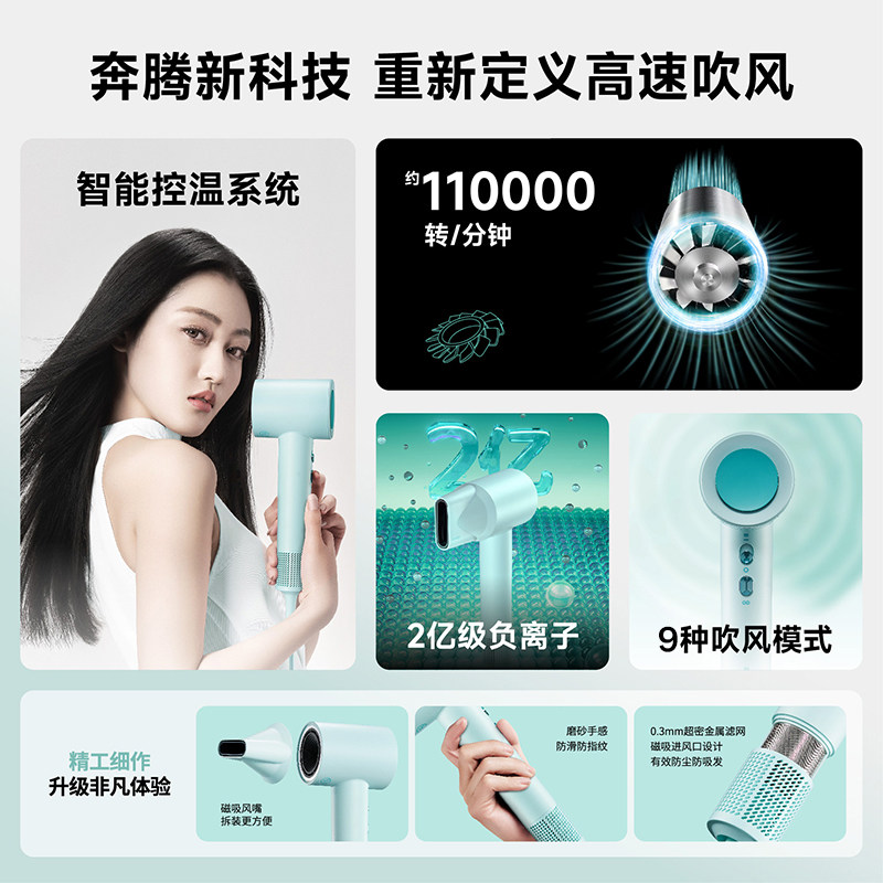 奔腾高速电吹风机家用负离子护发恒温风筒大风力速干生日礼物礼盒