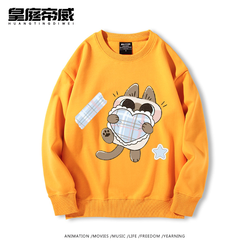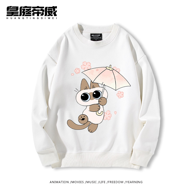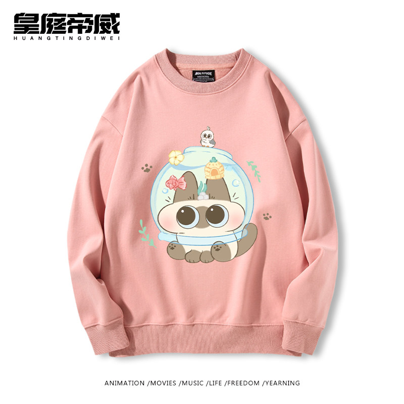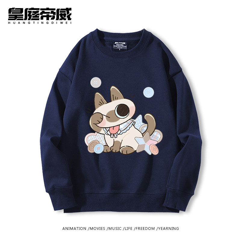 暹罗猫小豆泥可爱卡通猫猫周边加绒圆领卫衣男女儿童秋冬宽松休闲