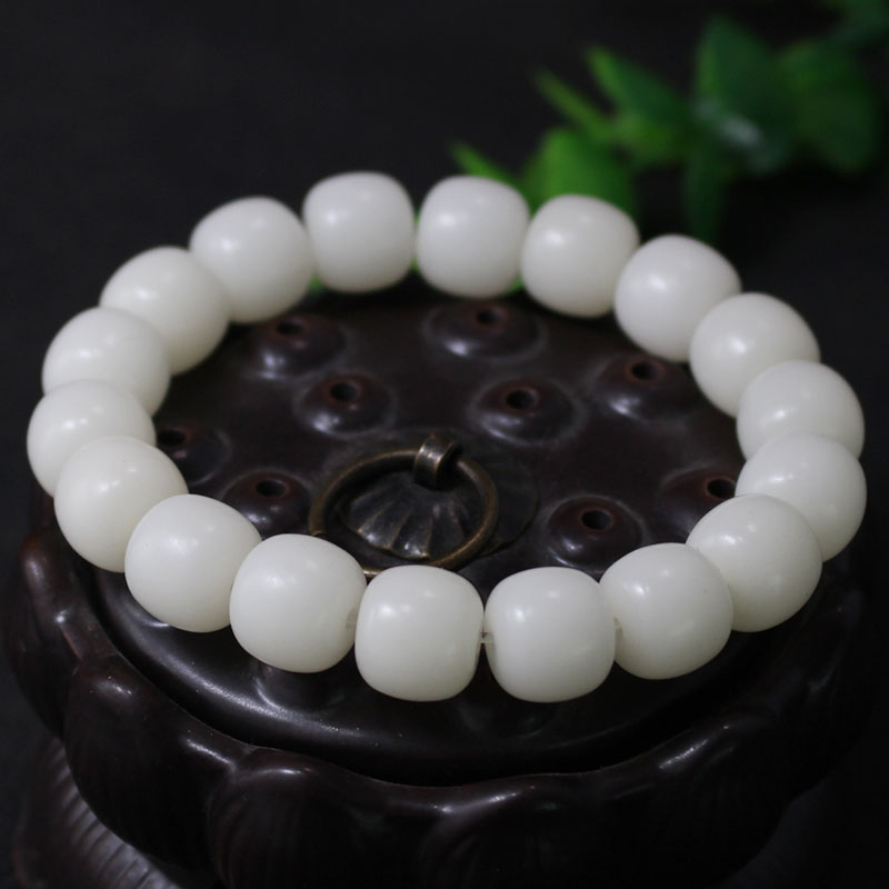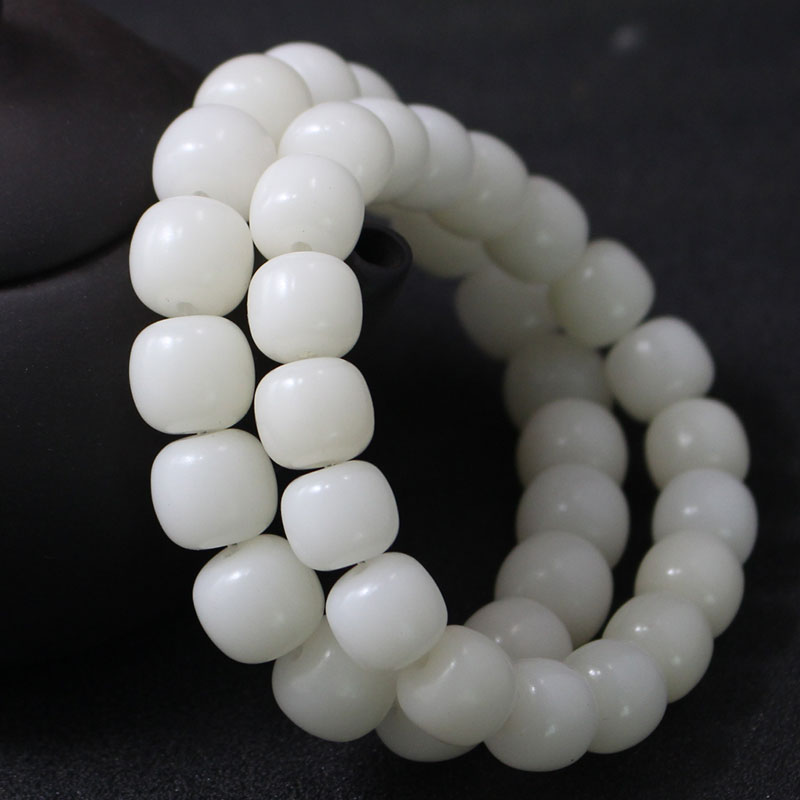 陵固思白玉菩提根桶珠手串