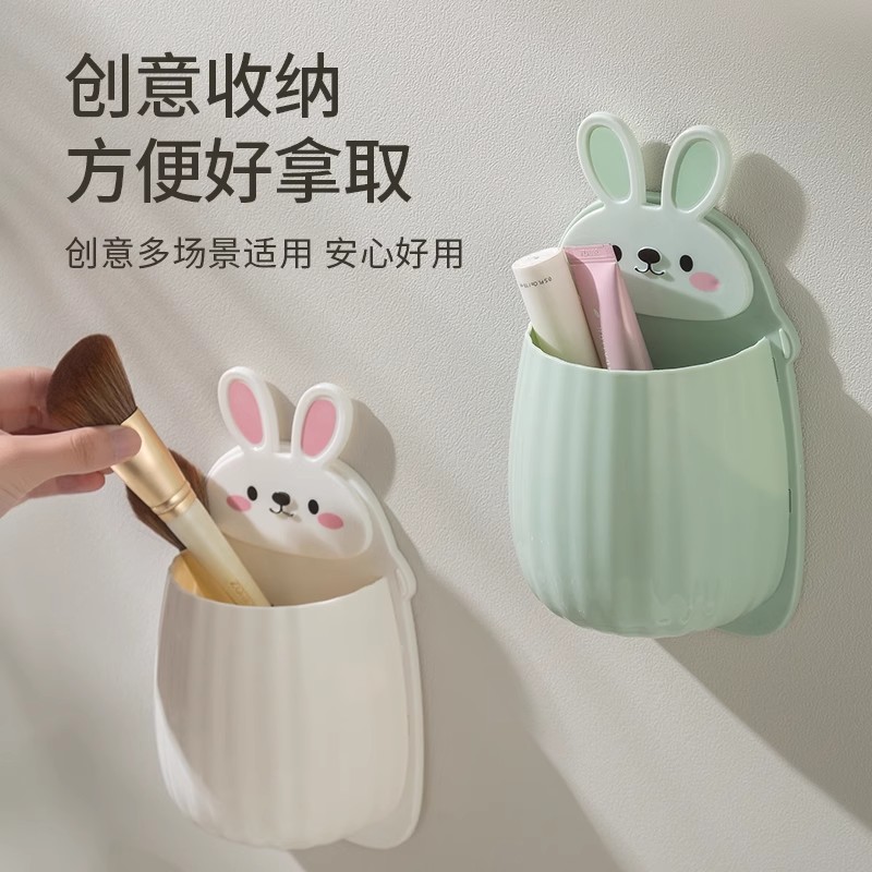 创意卡通兔子置物架宿舍卫生间化妆工具整理盒牙刷床头壁挂收纳盒