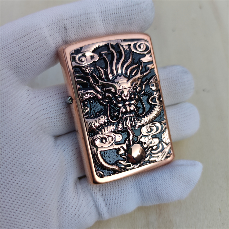 佐罗中国龙煤油打火机黄铜外壳祥龙龙头连体贴章DIY新国潮复古