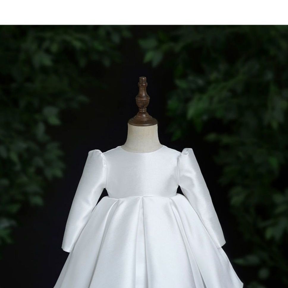 花童婚礼小女孩礼服高端女童白色婚纱儿童生日周岁宝宝公主裙秋季