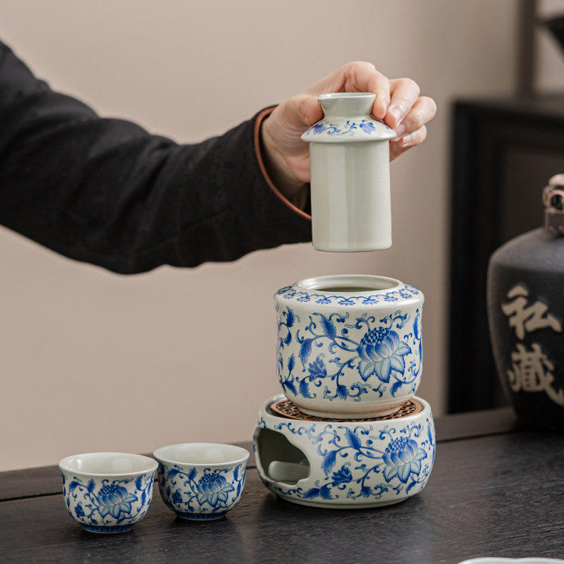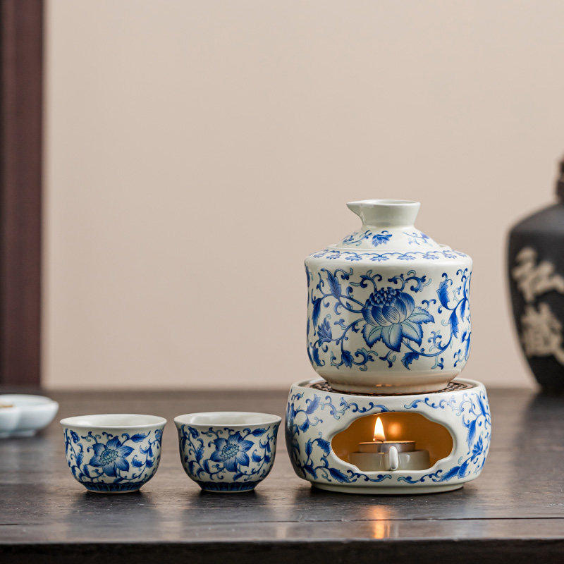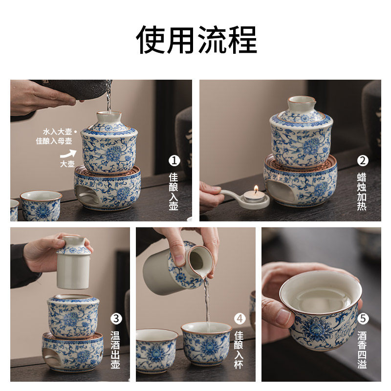 汝窑老式温酒器陶瓷加热底座酒具套装家用烫酒暖酒壶白酒黄酒冬天