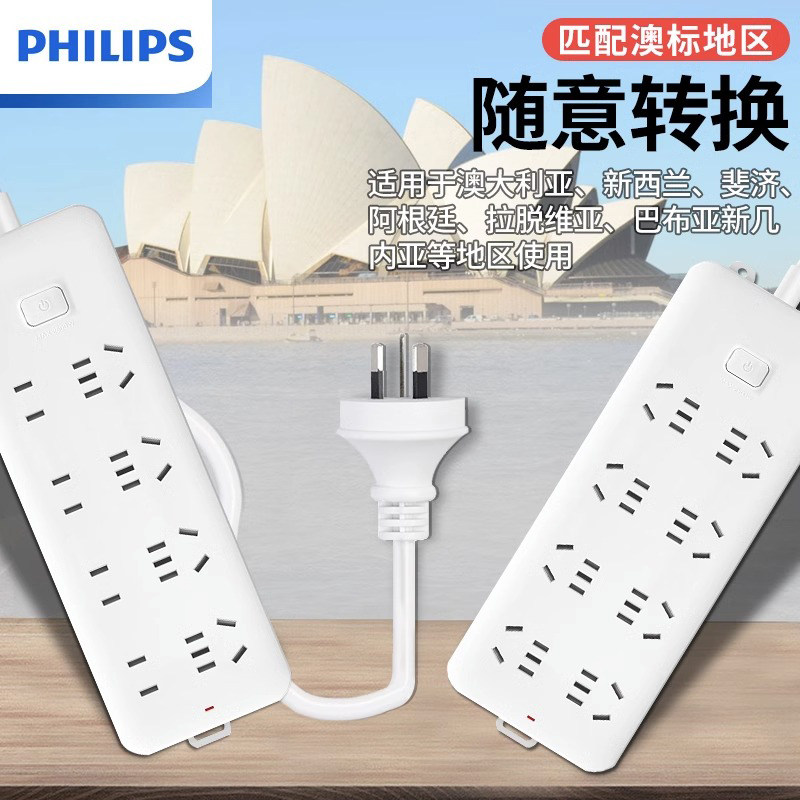 飞利浦澳洲转换插头器澳标插排新西兰澳大利亚旅游留学直头接线板