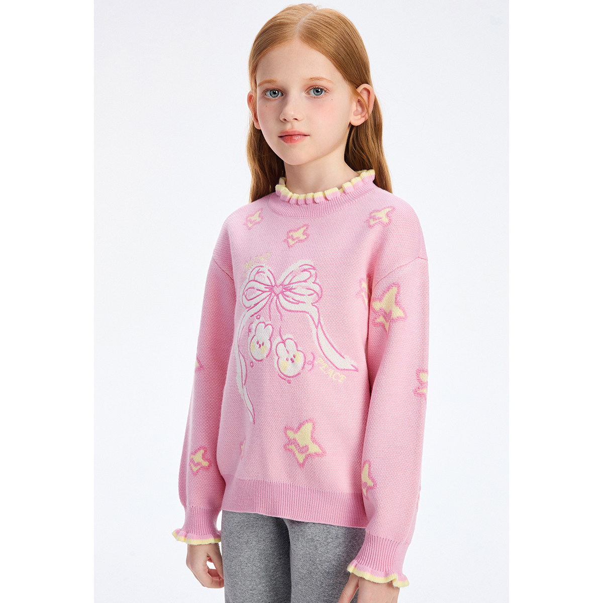 太平鸟女童花边领毛衣针织衫
