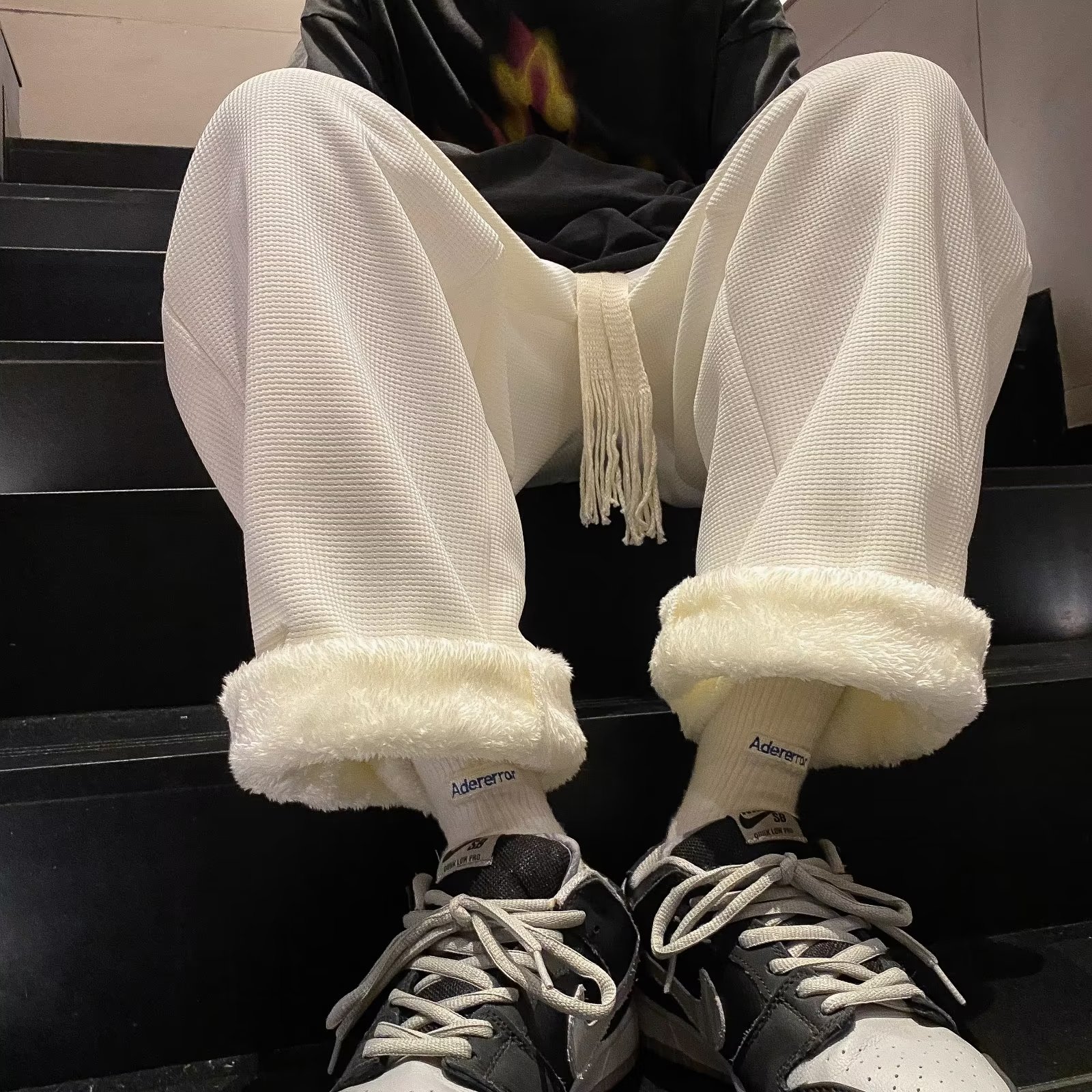 羊羔绒卫裤男秋冬季加厚加绒裤子潮牌宽松大码阔腿保暖裤男士棉裤