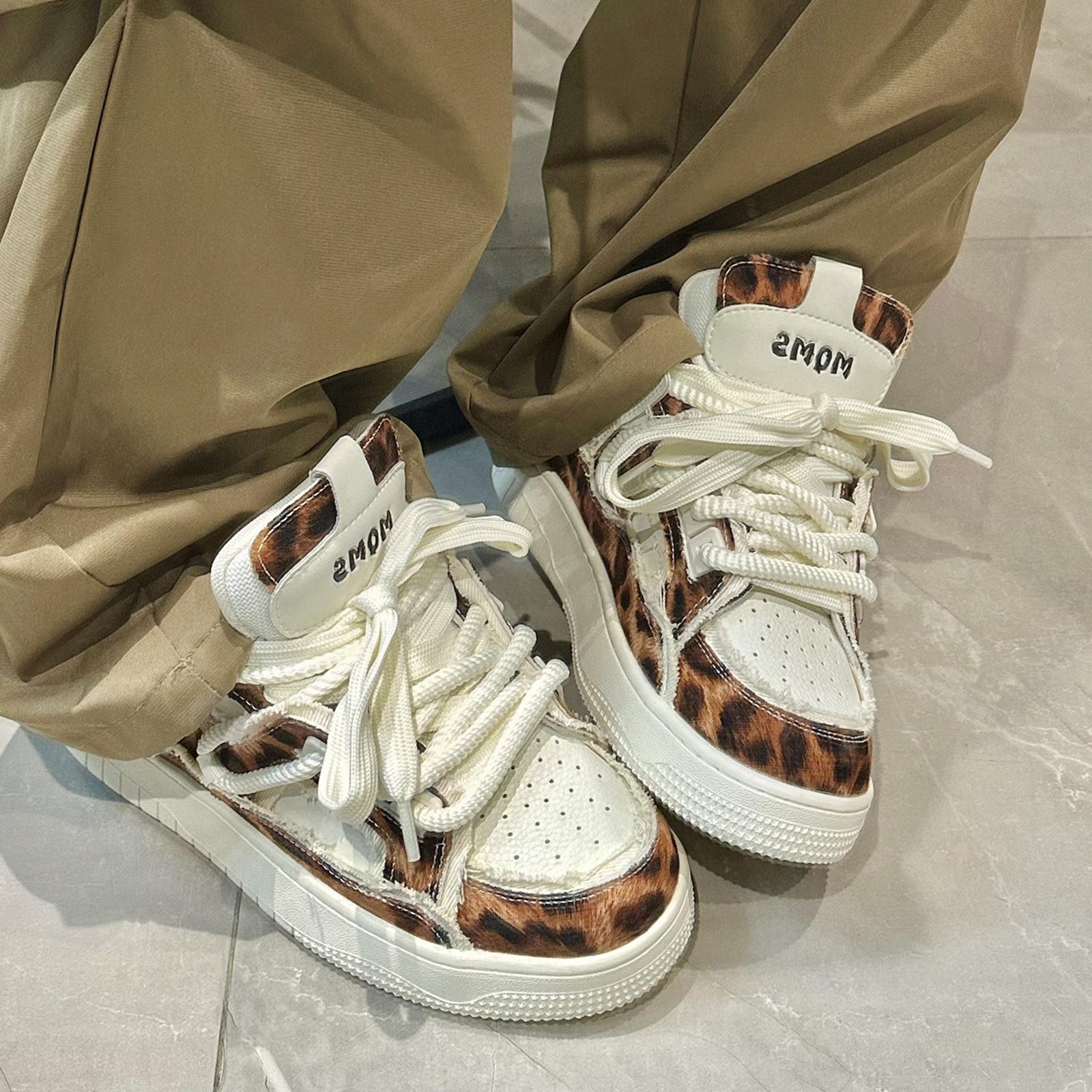 MQMS秋冬破坏美学街头增高厚底鞋豹纹面包鞋休闲板鞋男女情侣鞋子
