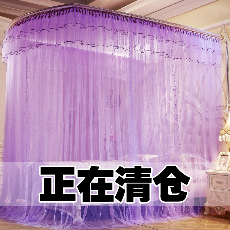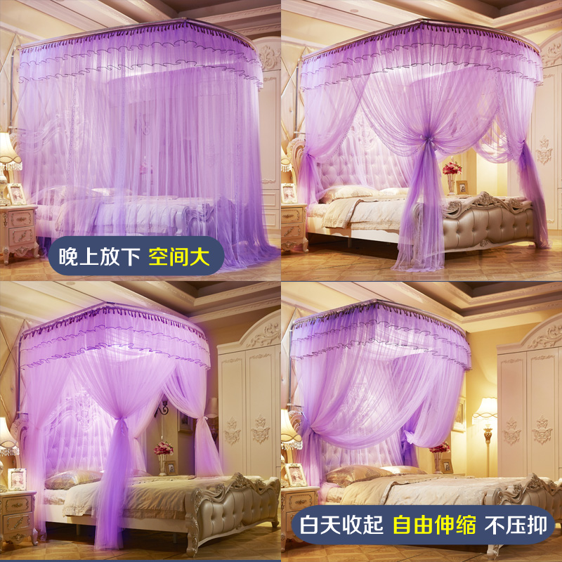 伸缩蚊帐U型加密加厚纹账2米落地支架公主风1.5米1.8m床双人家用