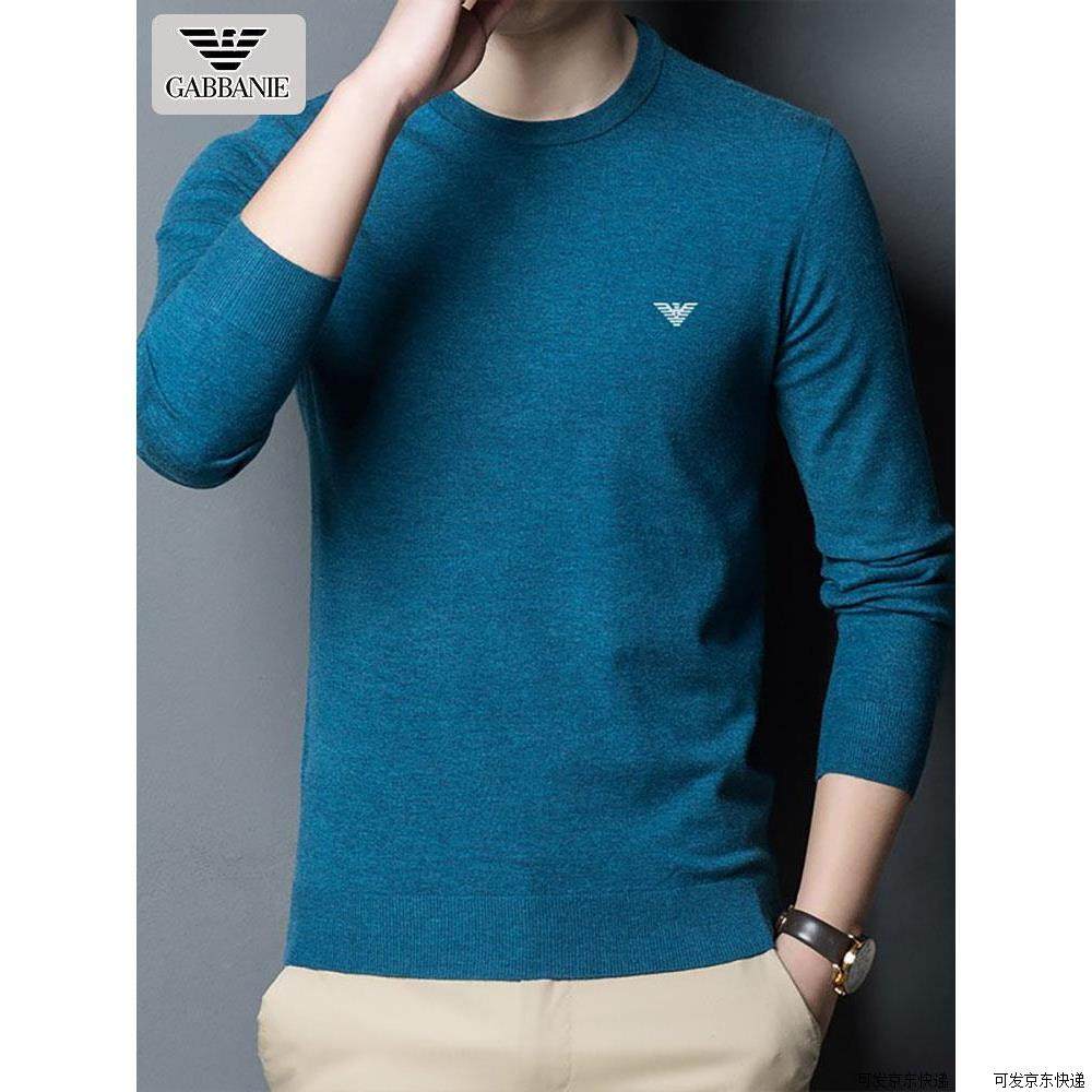 正品意大利 男士圆领针织长袖T恤春季新款打底小衫中青年薄款毛衣