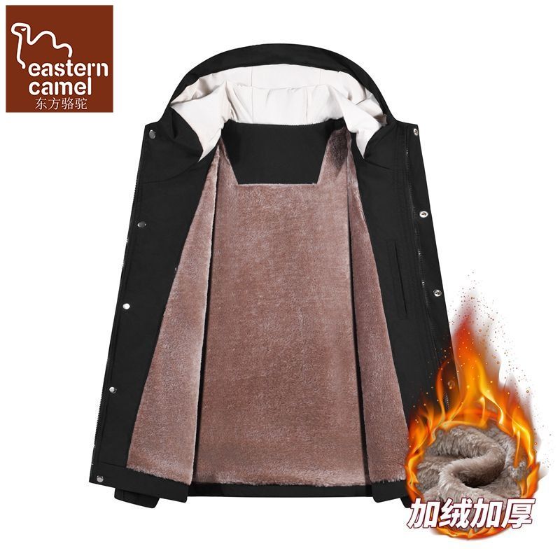东方骆驼工装棉衣男防风防水连帽冲锋衣男士冬季加绒加厚夹克外套
