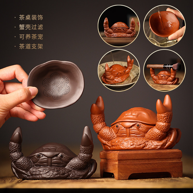 创意紫砂茶宠可养螃蟹一体茶漏茶滤功夫茶具配件家用茶叶过滤器