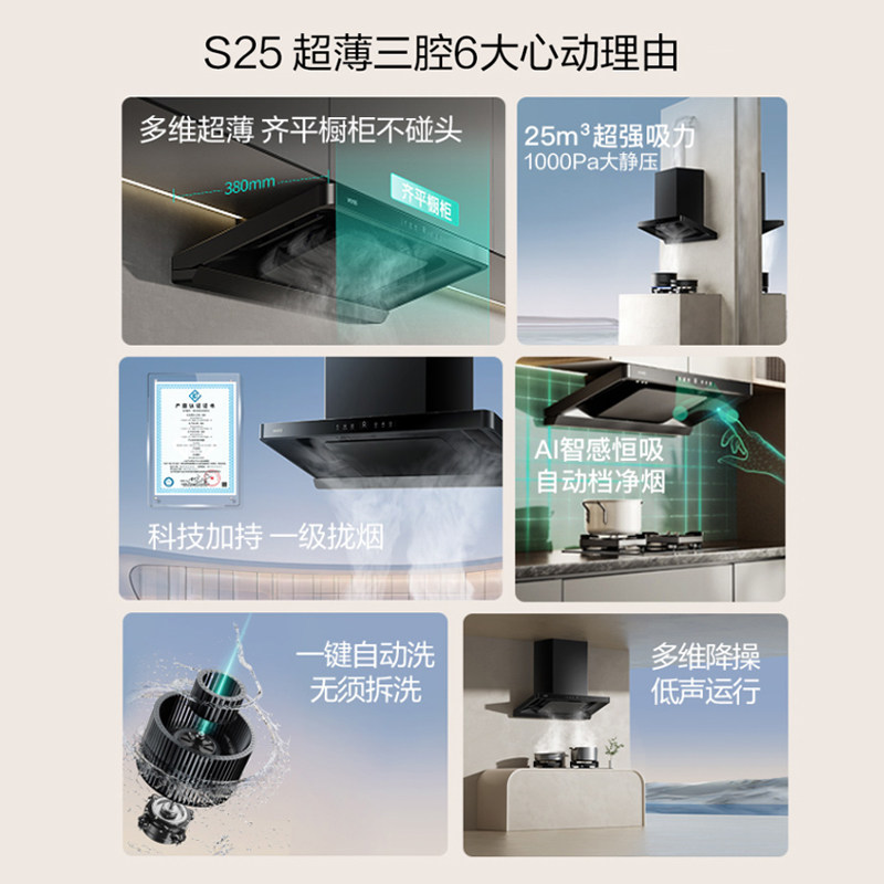 华帝小飞碟S25/S35超薄抽油烟机欧式自动洗顶吸家用官方旗舰店