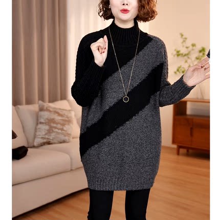 加厚毛衣女秋冬季新款百搭打底衫大码针织内搭中长款宽松显瘦上衣