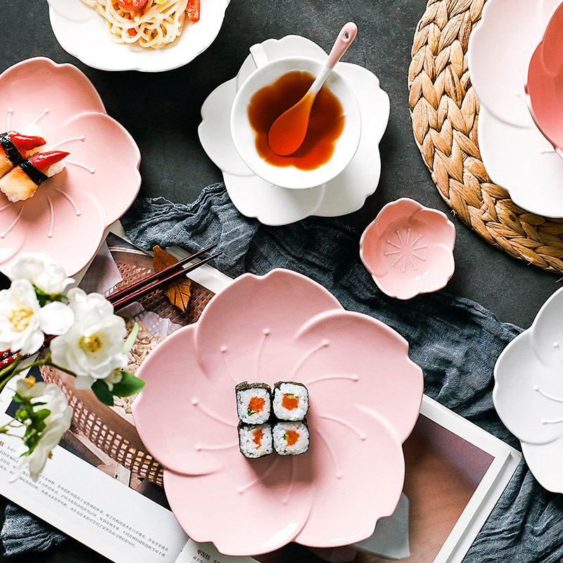 吉布日式樱花餐盘少女心新骨瓷餐盘甜品蛋糕水果盘酱碟早餐点心盘