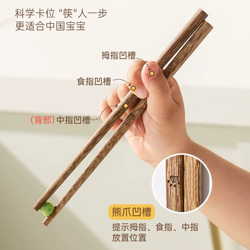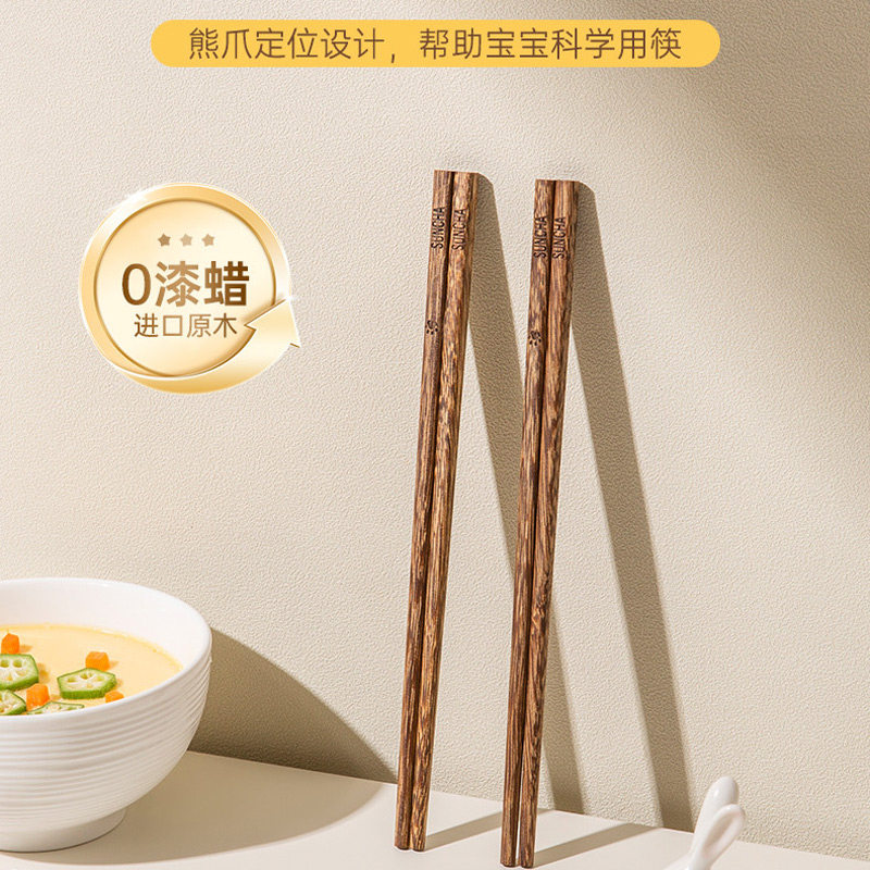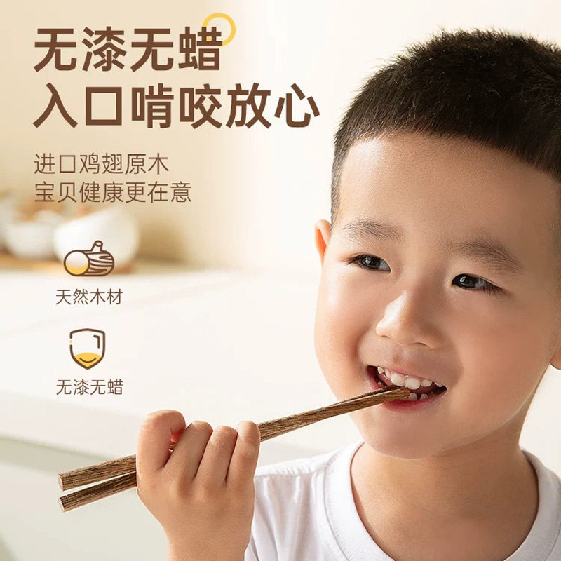 双枪儿童筷子训练筷3-12岁鸡翅木筷宝宝小学生专用实木筷子