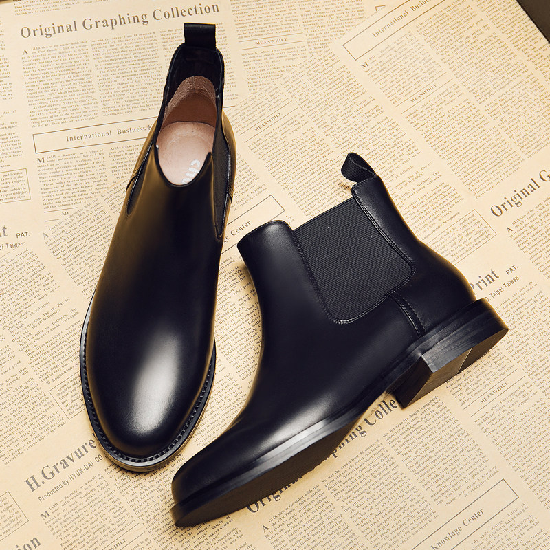 真皮小跟短靴女春秋单靴平底马丁靴英伦网红瘦瘦学生韩版切尔西靴