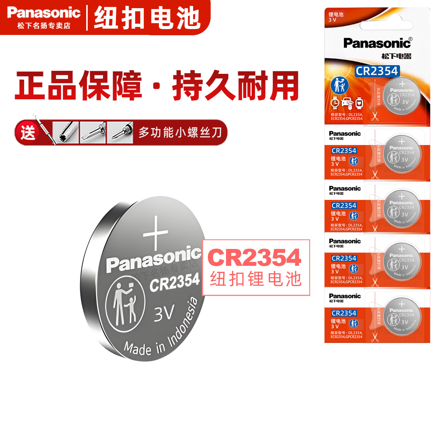 松下CR2354纽扣电池3V锂电仪器2354适用于仪表部分特斯拉汽车遥控面包机电池钮扣5粒