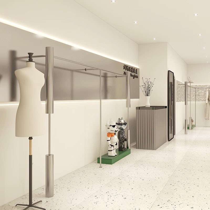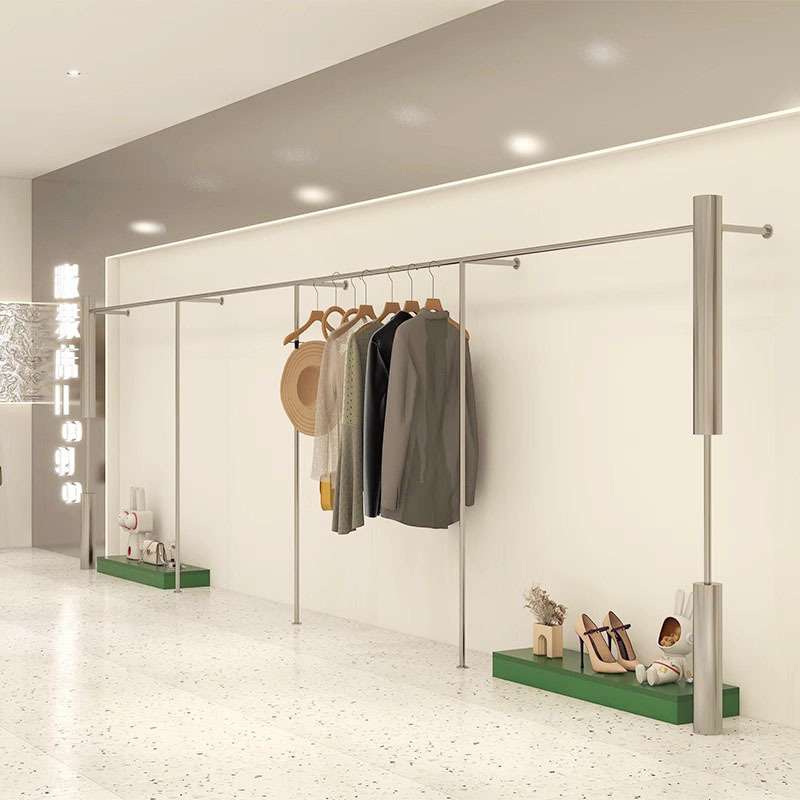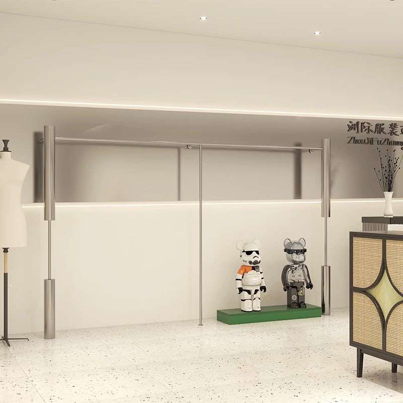 服装店展示架上墙女装店专用货架落地挂衣架买手店不锈钢挂衣杆