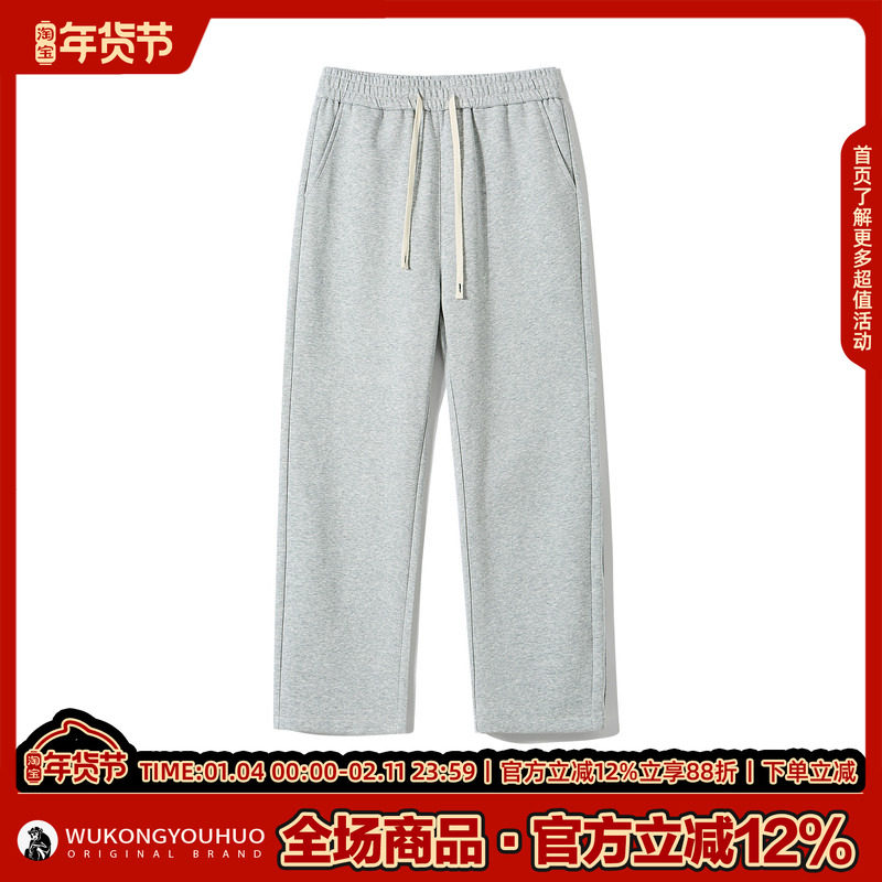 悟空有货复古潮牌纯色直筒垂感运动卫裤男女宽松百搭情侣休闲长裤