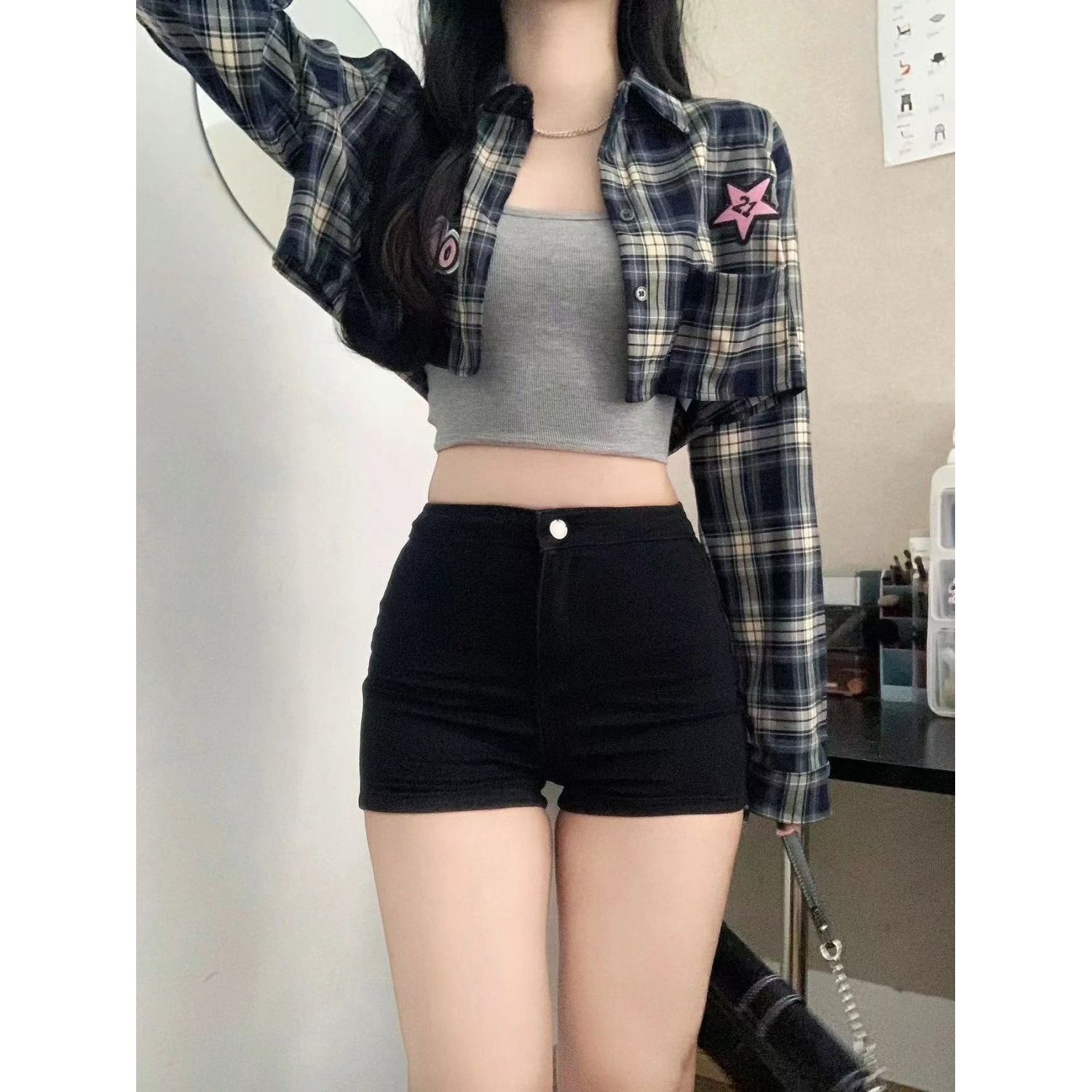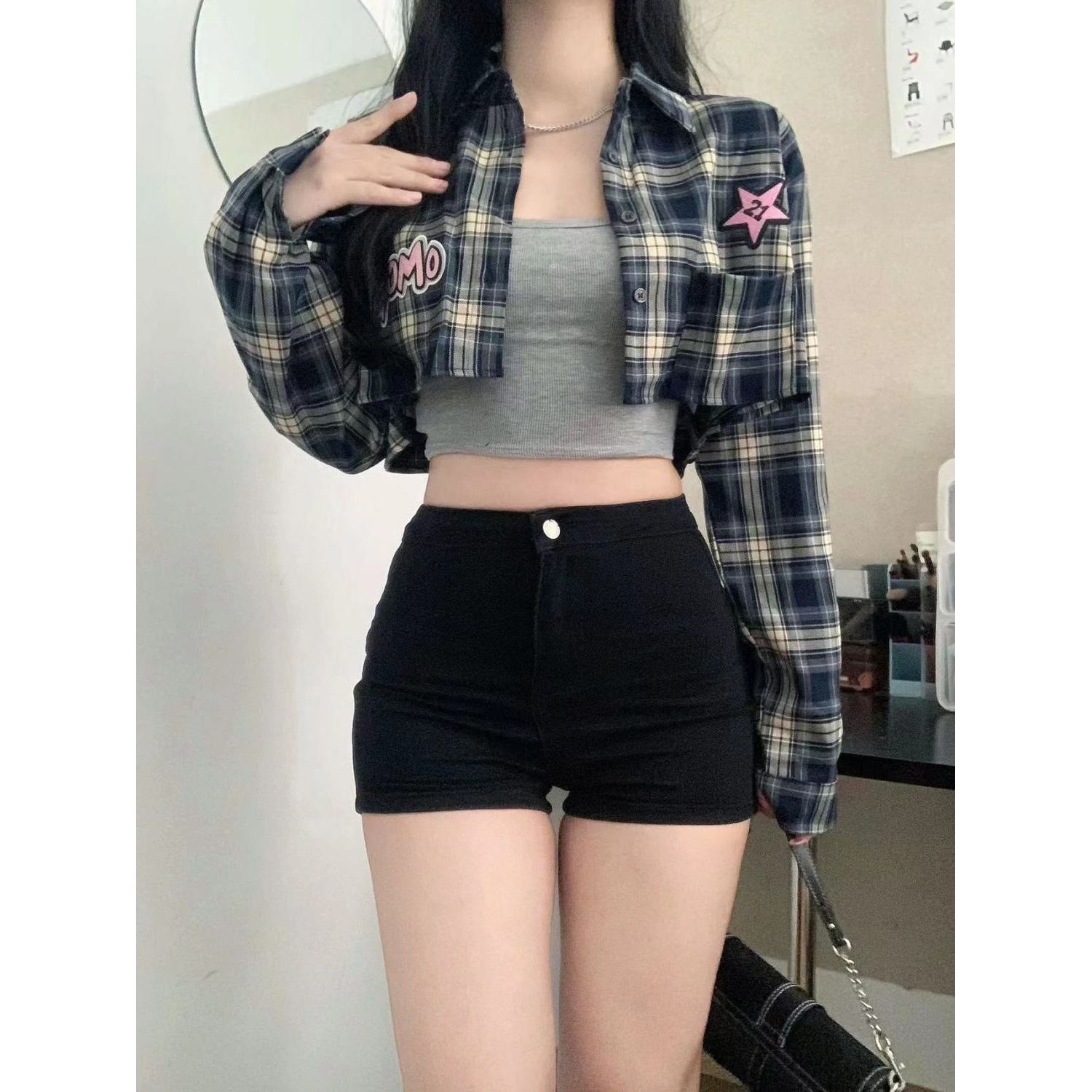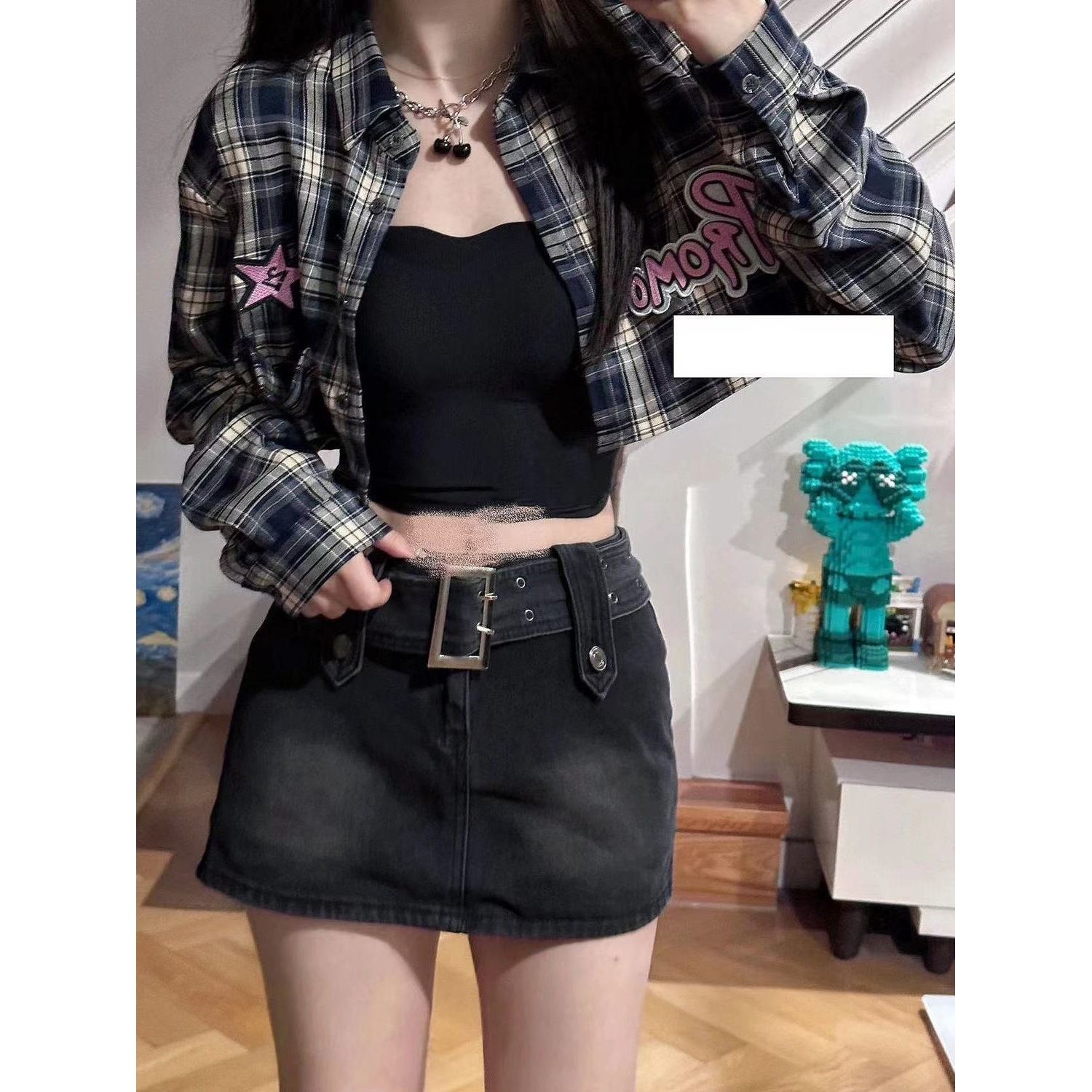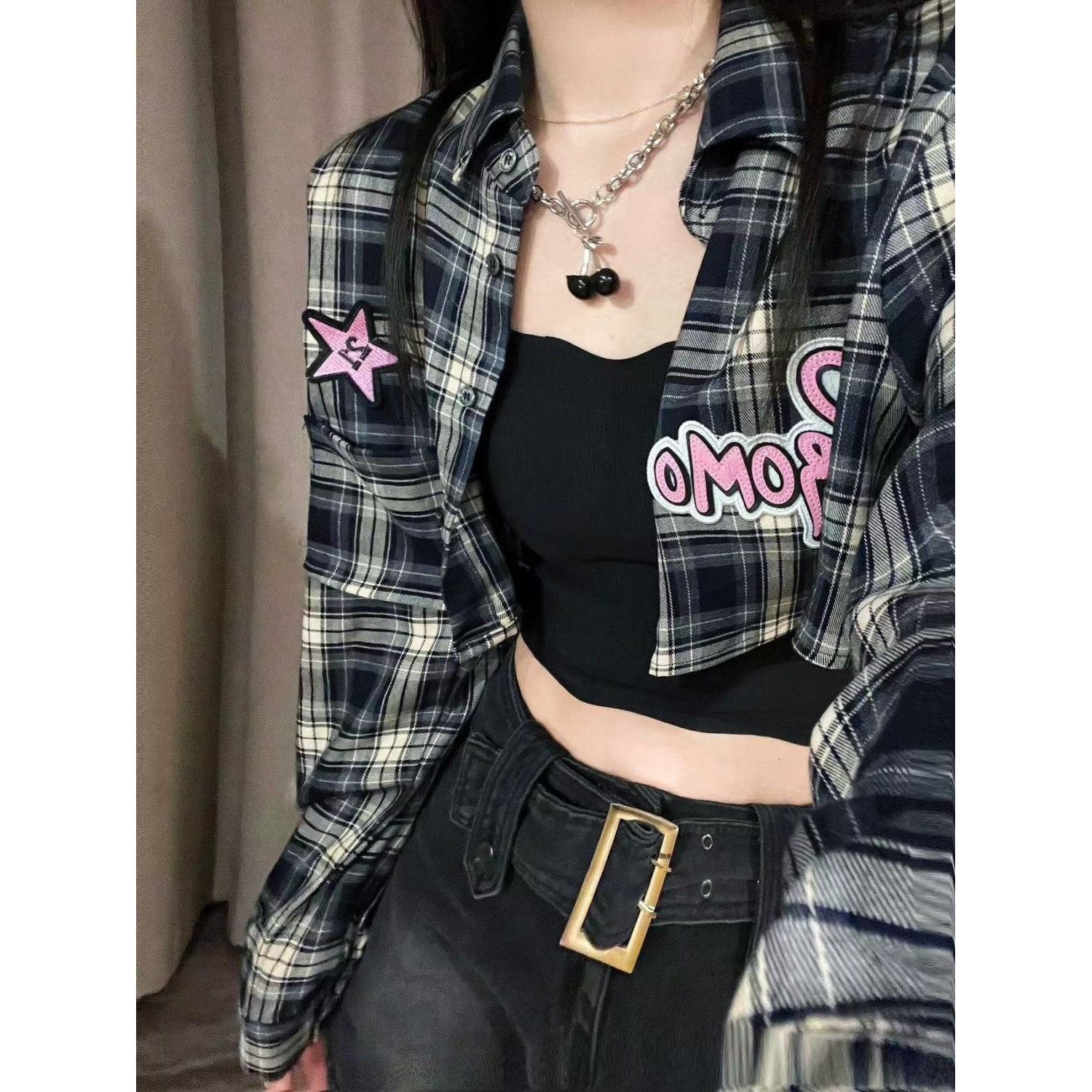2024夏季新款刺绣短款衬衫女宽松显瘦格子衬衣防晒外搭百搭上衣潮