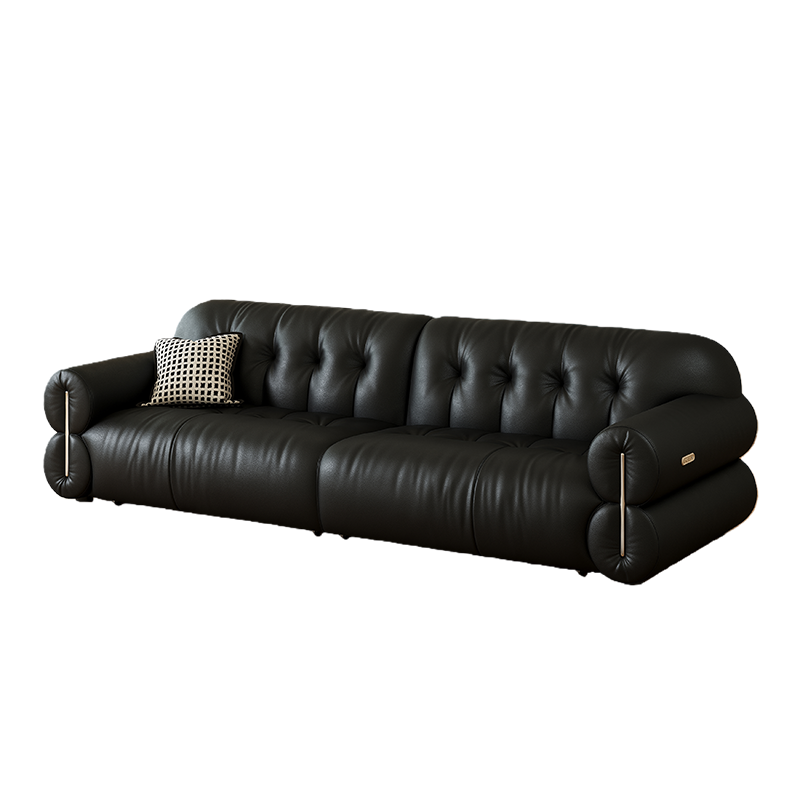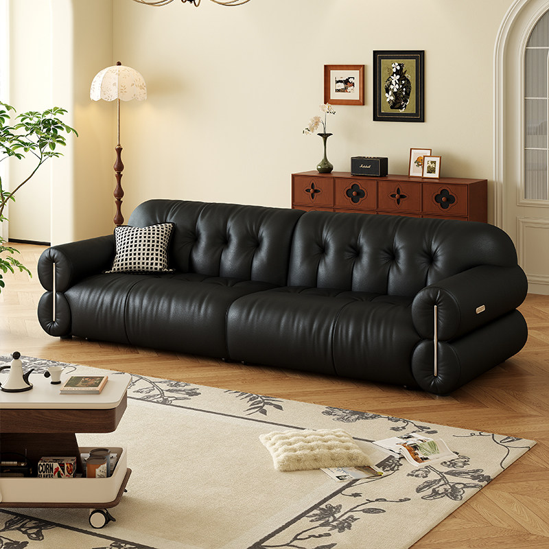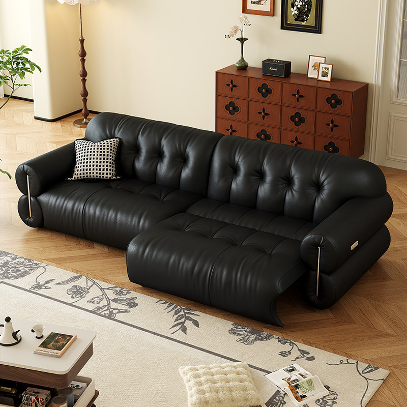 洛德头层牛皮电动伸缩平推法式黑糖云朵沙发黑色真皮复古风沙发床