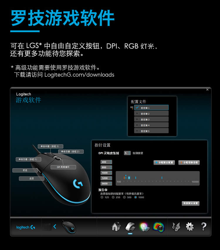 罗技GPRO有线游戏鼠标RGB改装凯华黑曼巴TTC金轮不双击宏编程鼠标