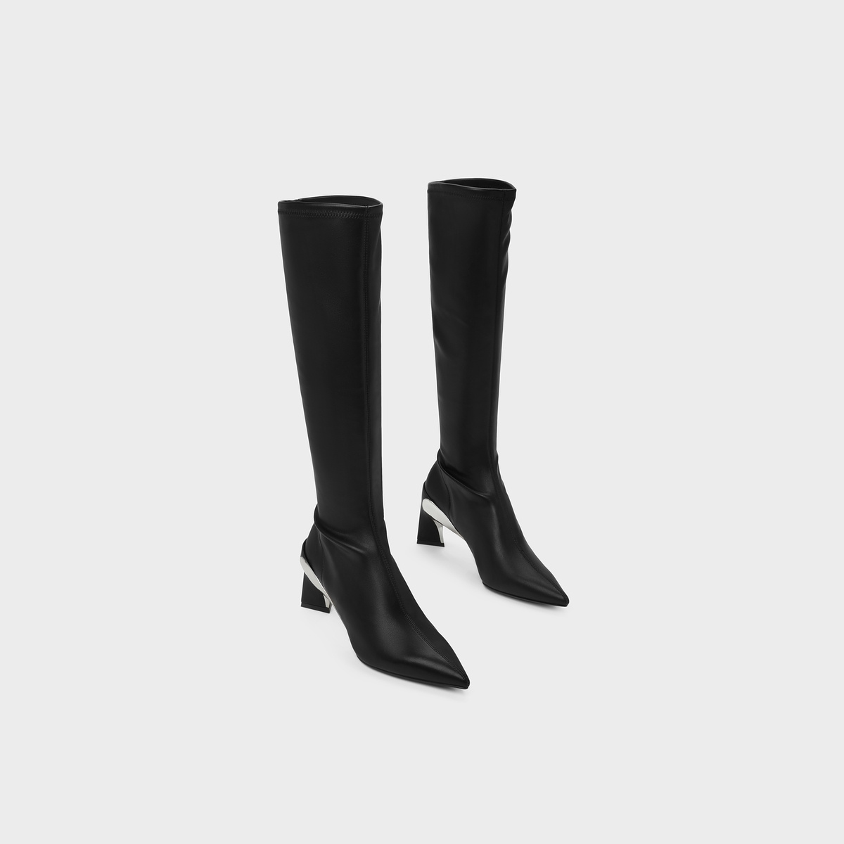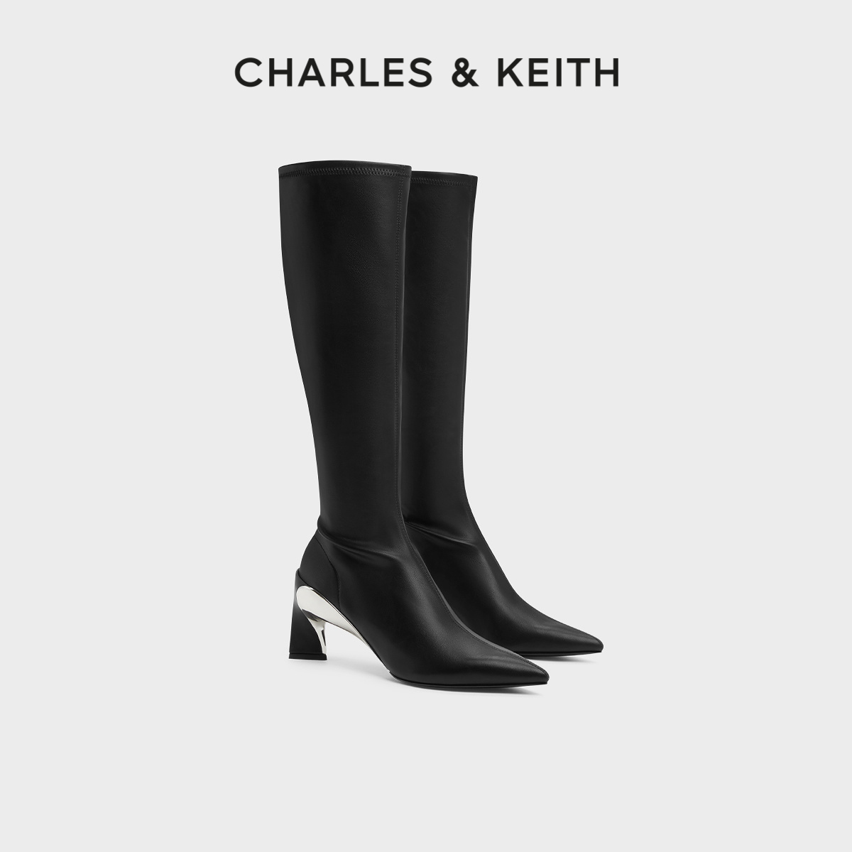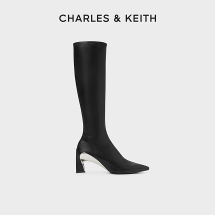 CHARLES&KEITH秋季女靴CK1-90360384时尚尖头粗跟弹力瘦瘦靴女