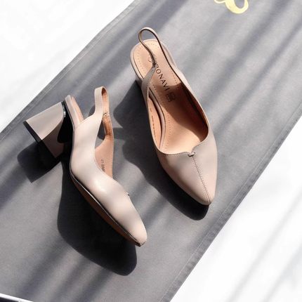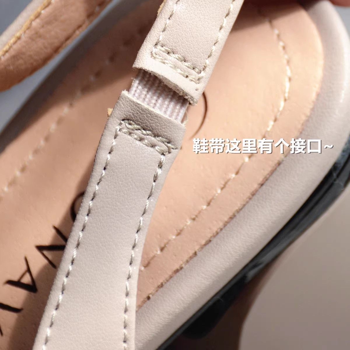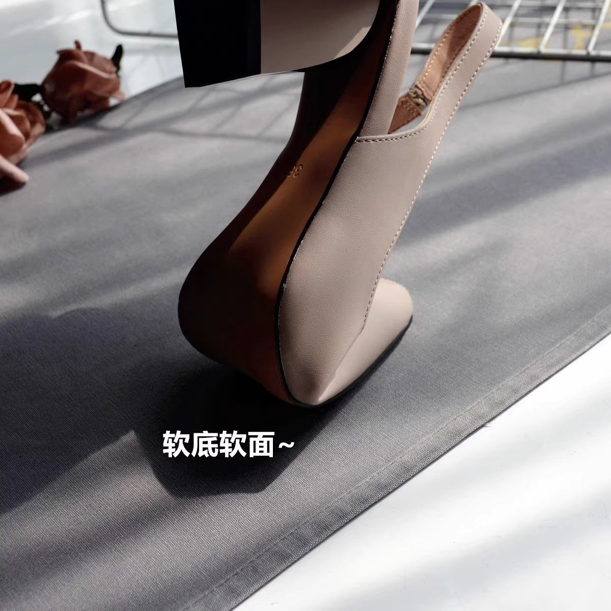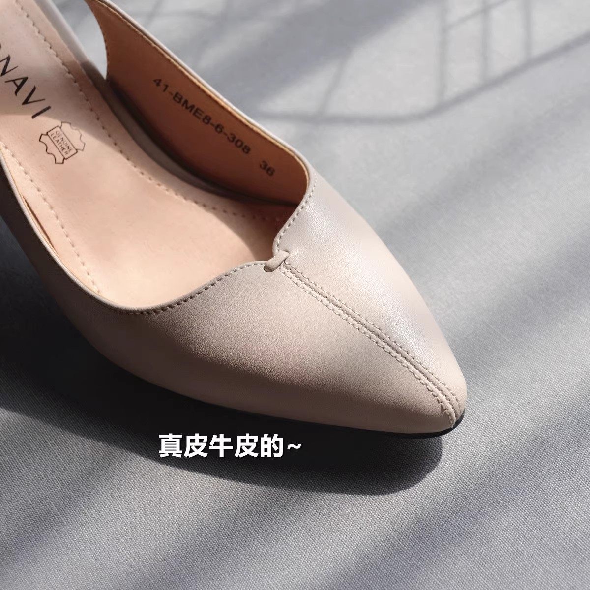 大码真皮凉鞋夏季粗跟尖头包头凉鞋女中空后拉链高跟单鞋百搭时尚