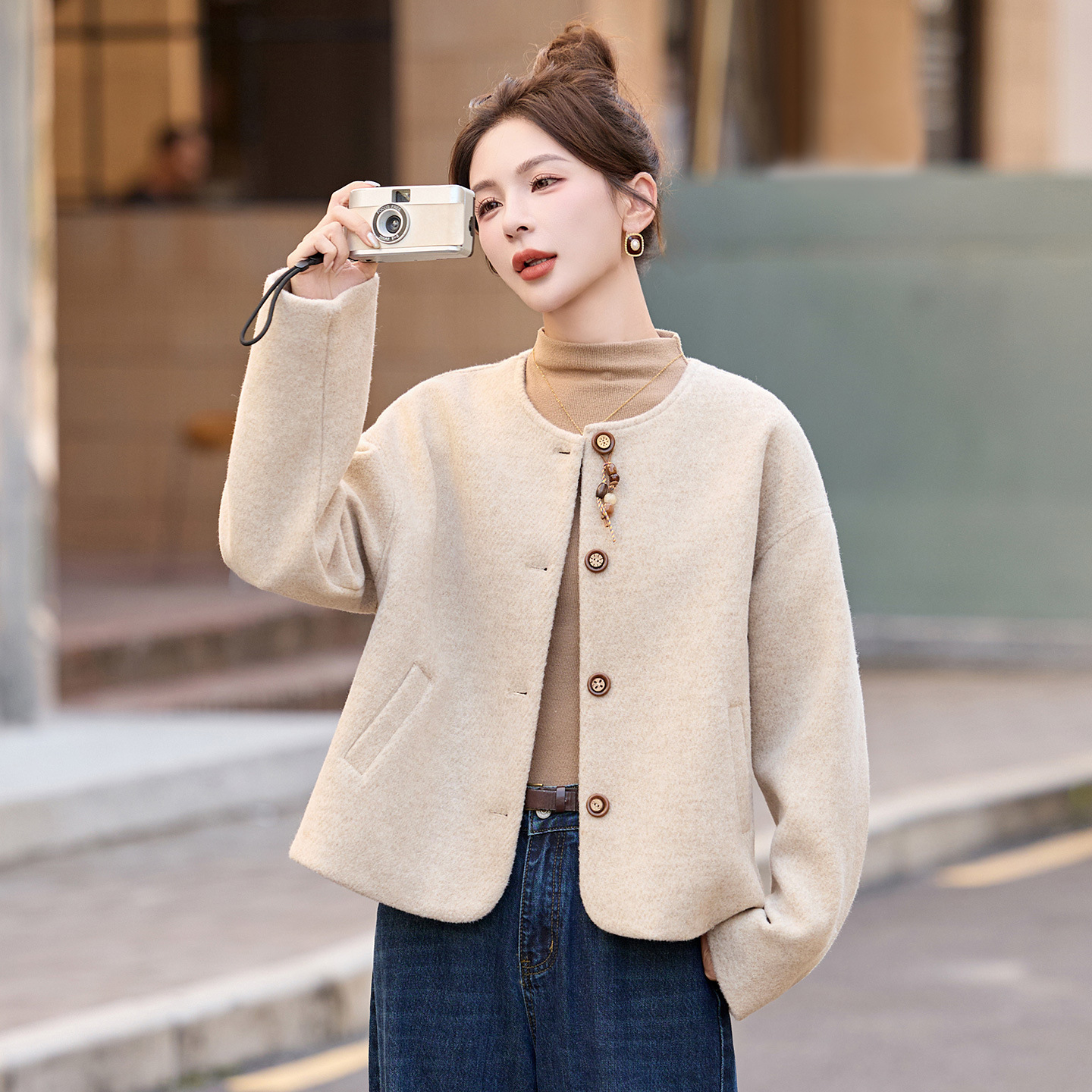 小香风时尚大气毛呢外套女2025秋冬小个子名媛宽松短款圆领上衣潮