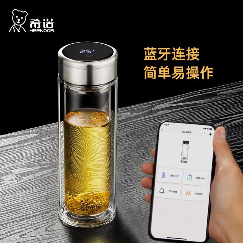 希诺水杯双层玻璃杯智能测温温度杯子男士家用耐高温泡茶杯5105