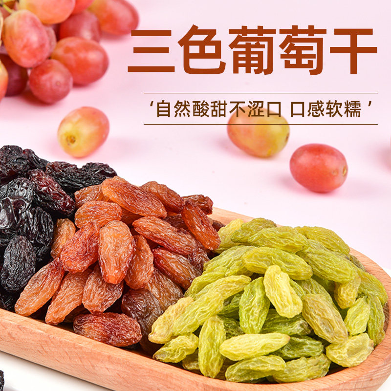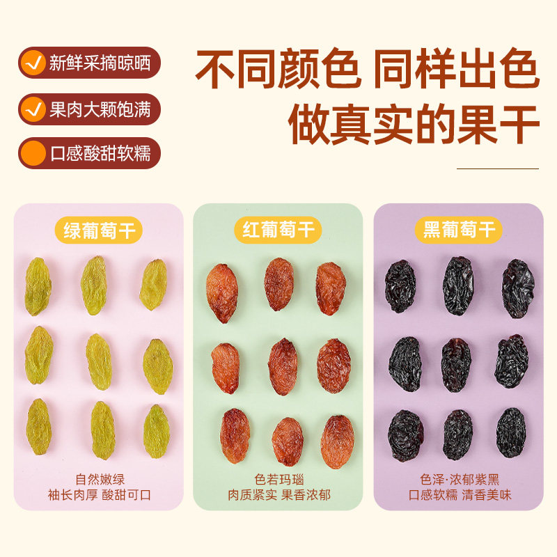 比比妙三色葡萄干非特级新疆免洗无核绿提子干黑葡萄果干休闲零食