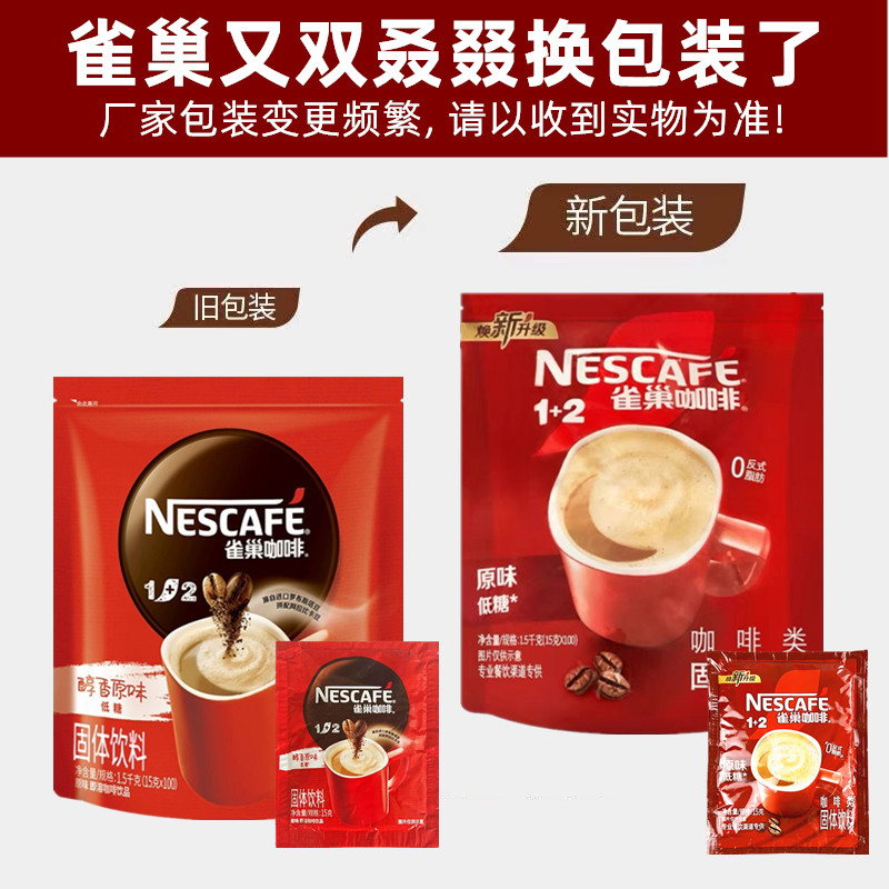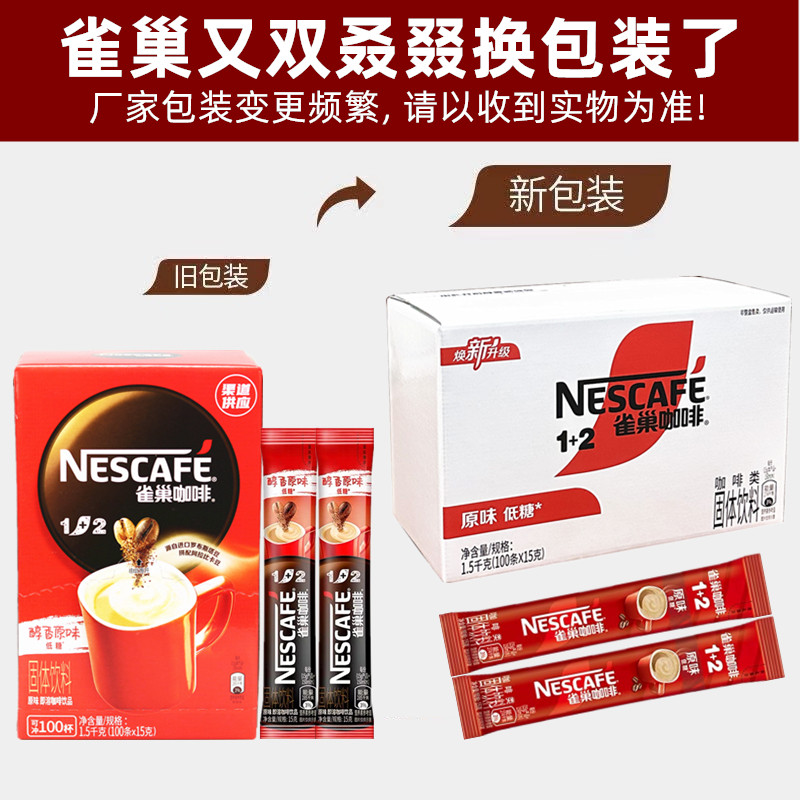 雀巢咖啡1+2原味三合一速溶咖啡粉20条袋装低糖学生上班提神防困