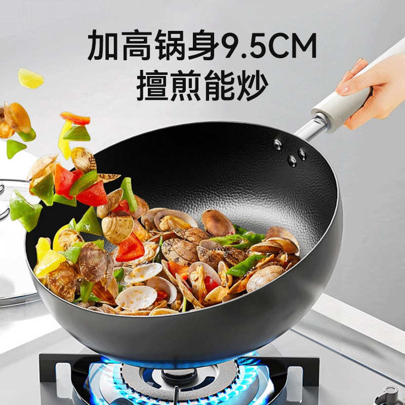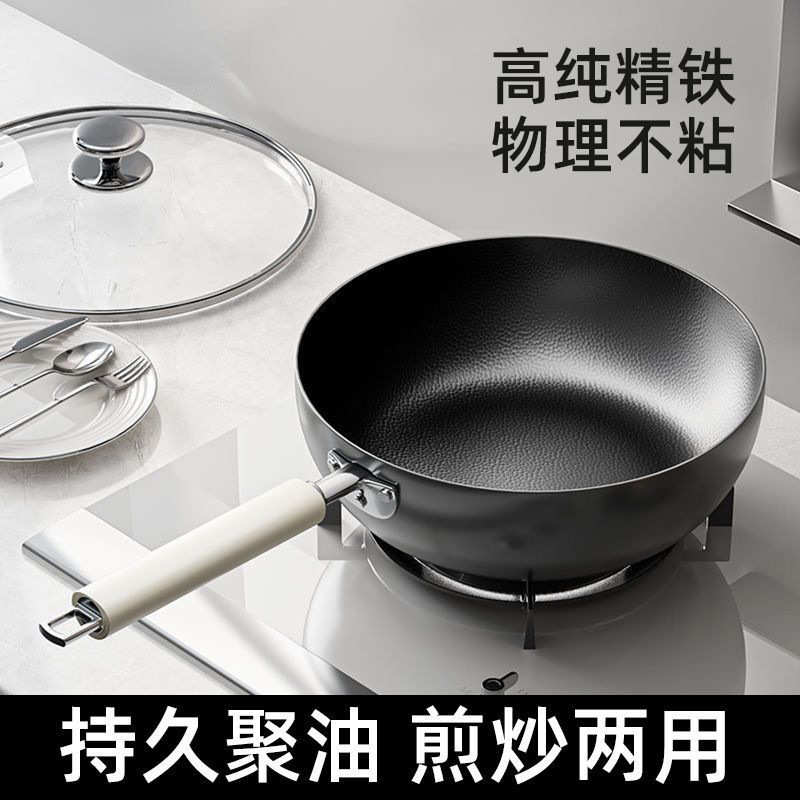 精铁一人食小炒锅无涂层煎炒锅不粘锅迷你小铁锅家用通用炉灶炒锅