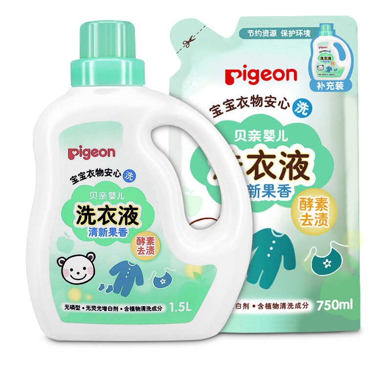 贝亲新生儿婴儿洗衣液1.5L+750ml清新果香酵素去渍宝宝衣物洗涤剂