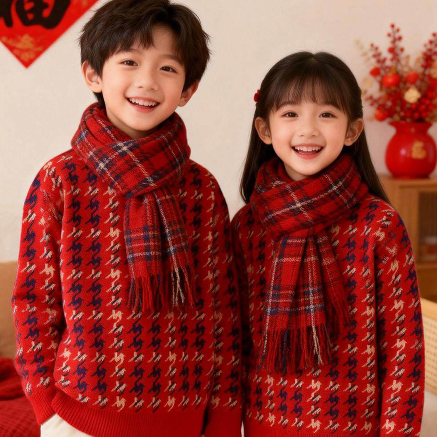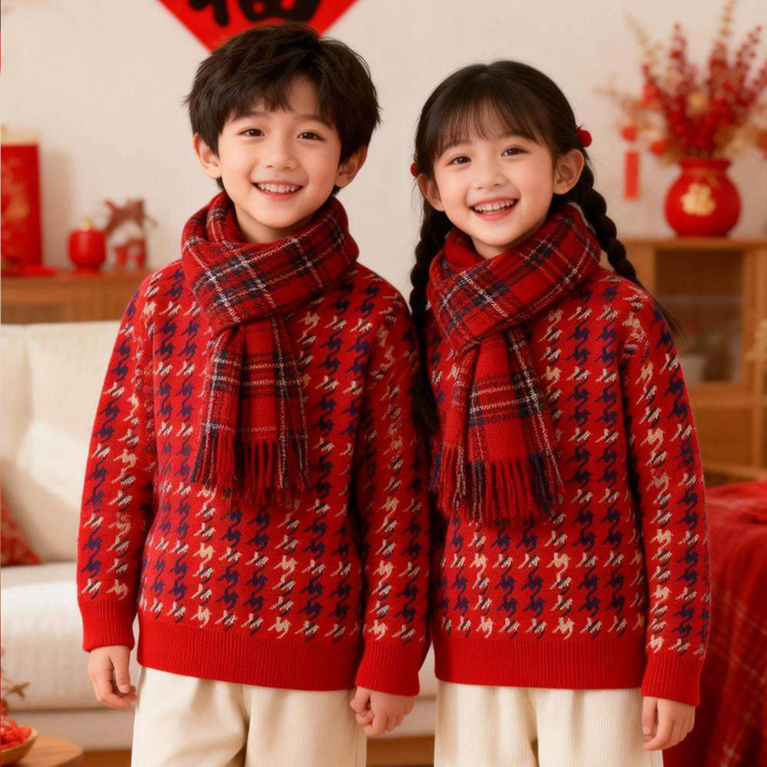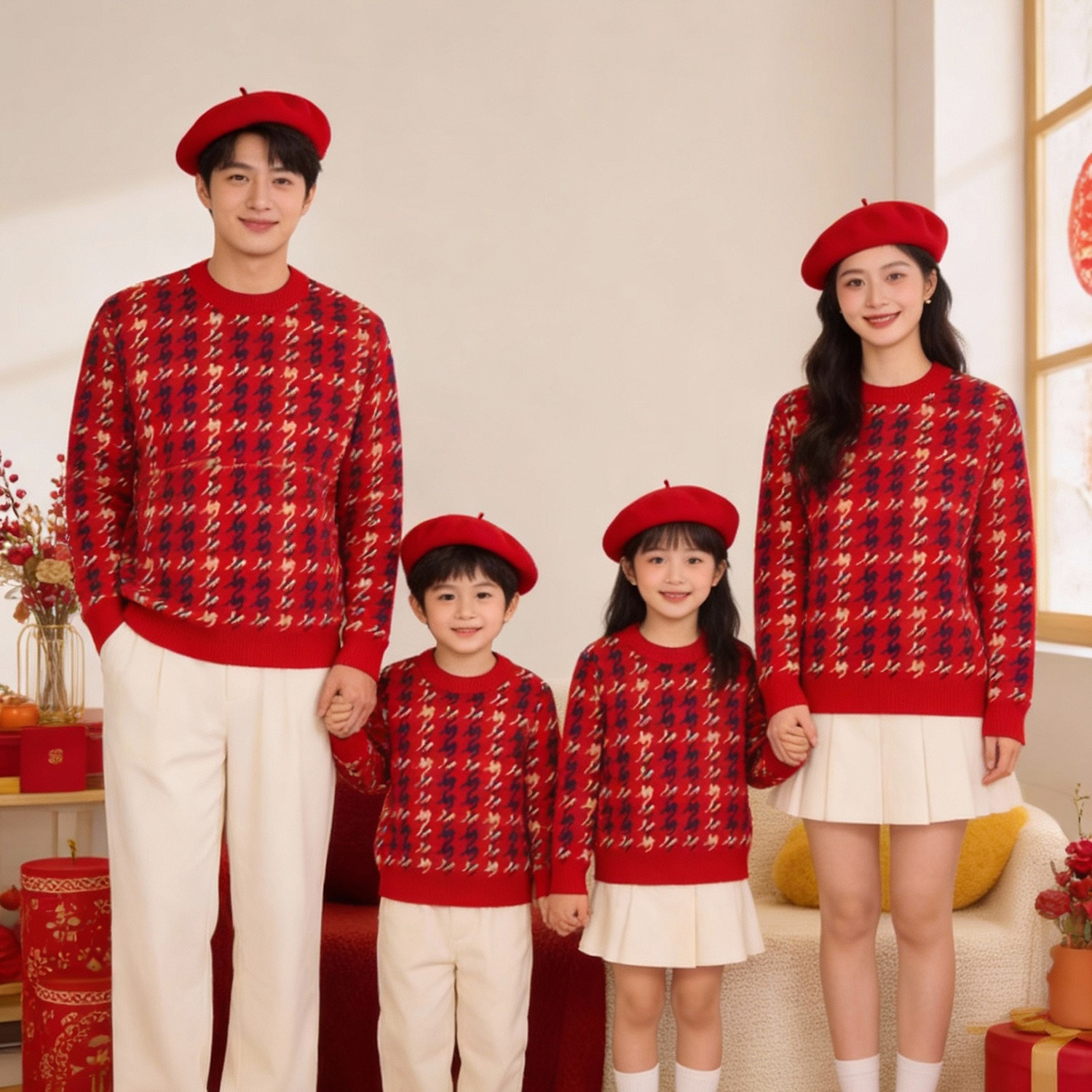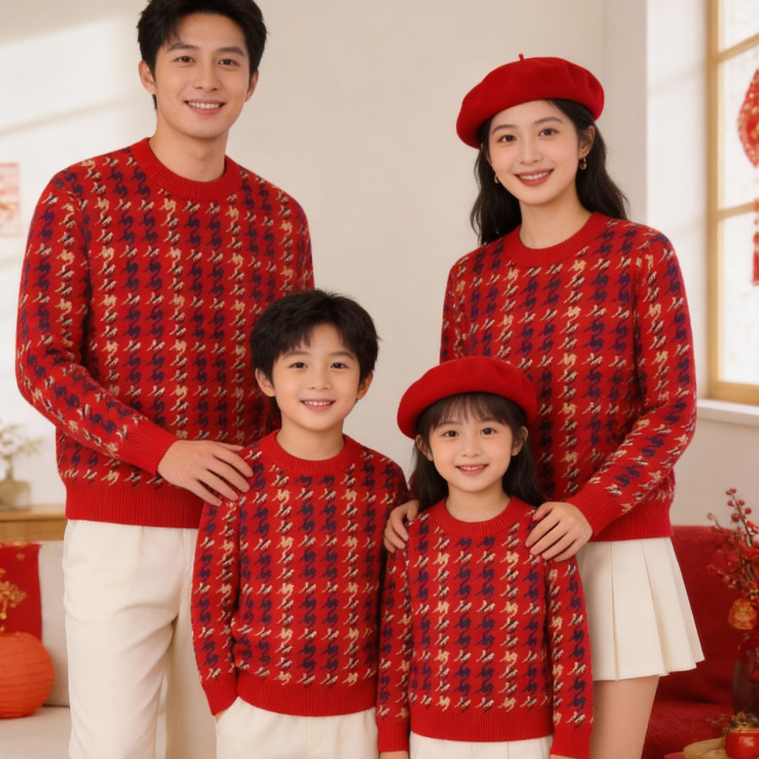 新年亲子装秋冬毛衣2026过年一家三口红色炸街母女装拜年服针织衫
