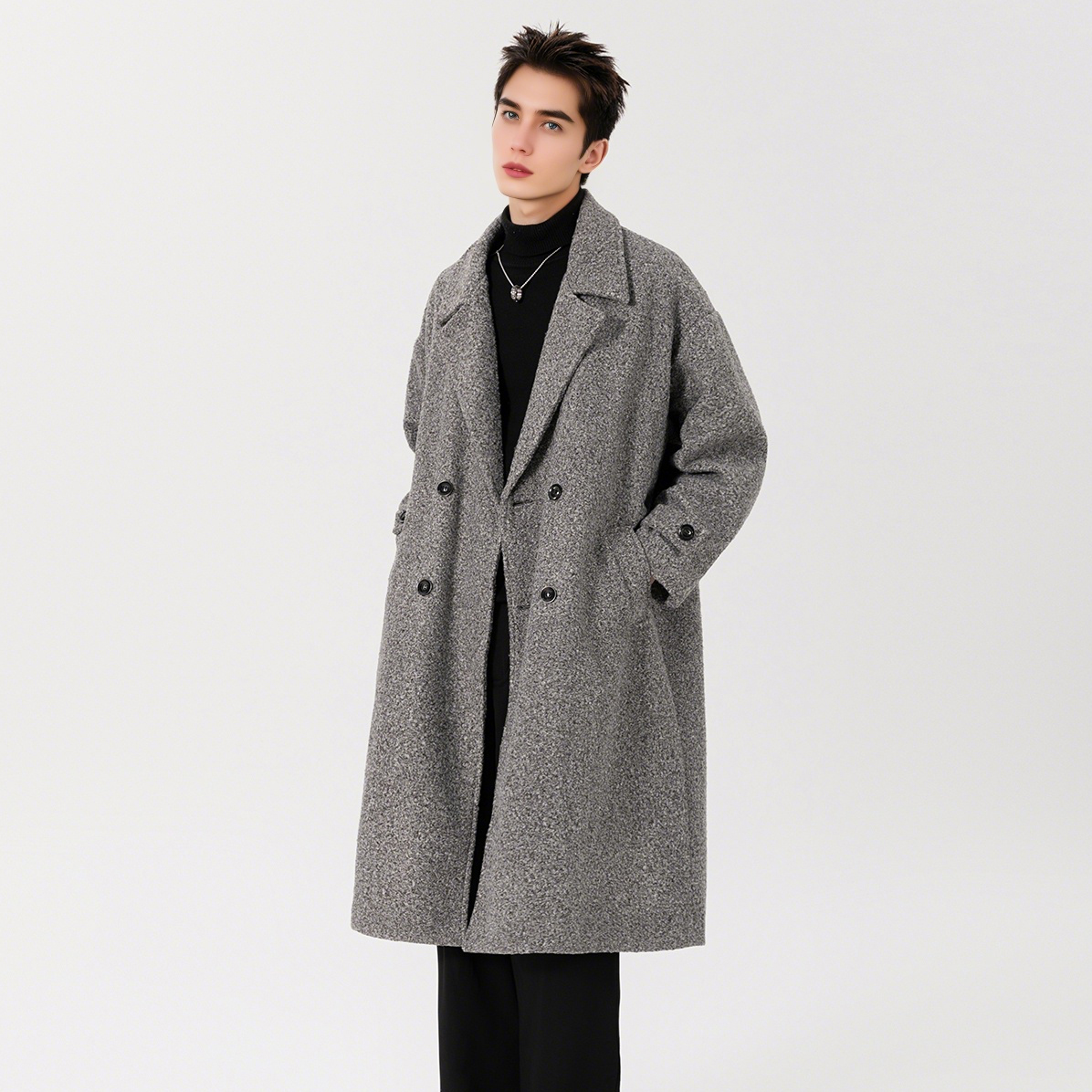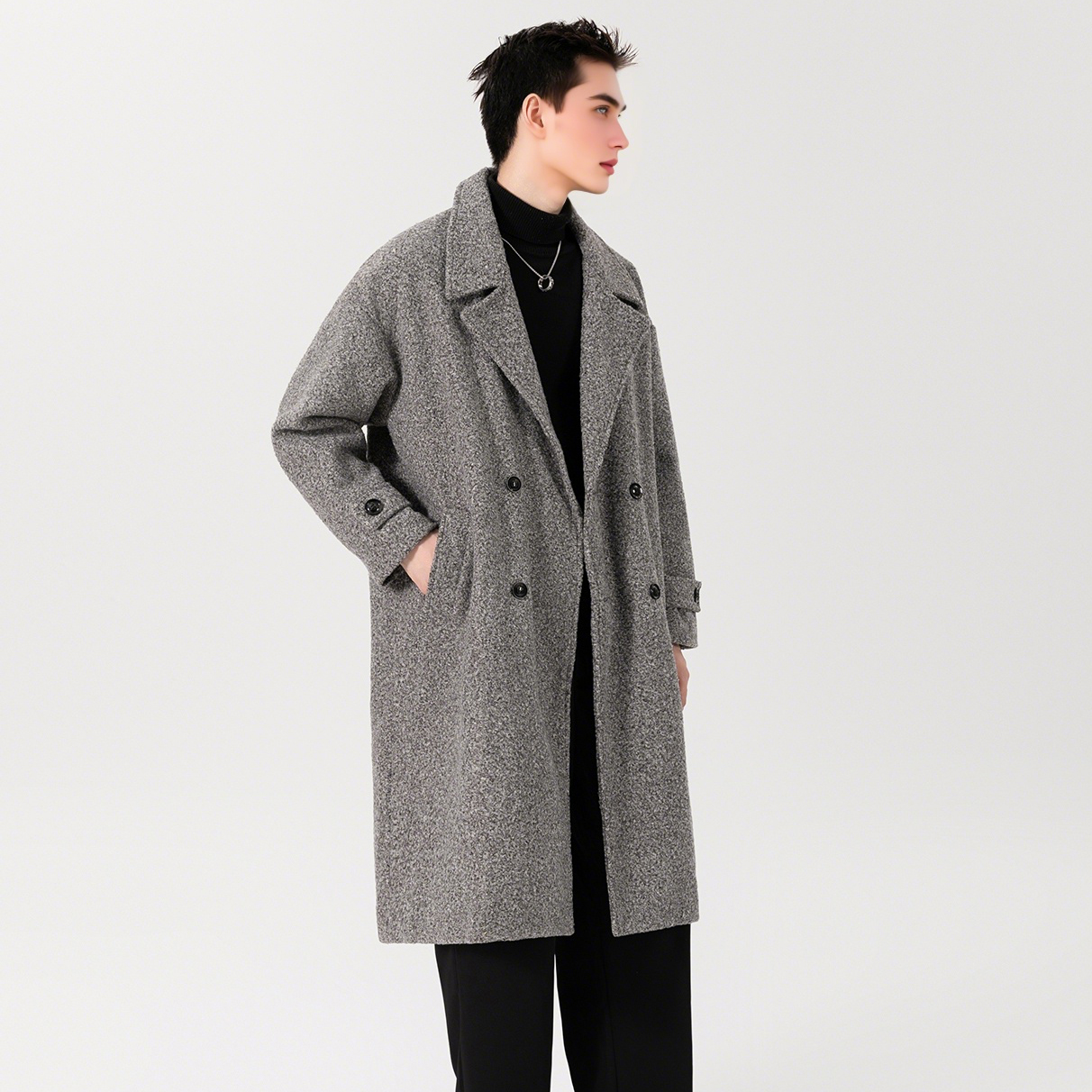 男士秋冬季新款高级感中长款西装领双排扣毛圈圈花呢大衣外套新款