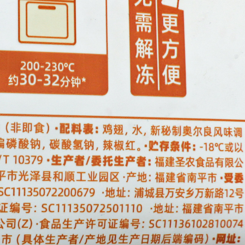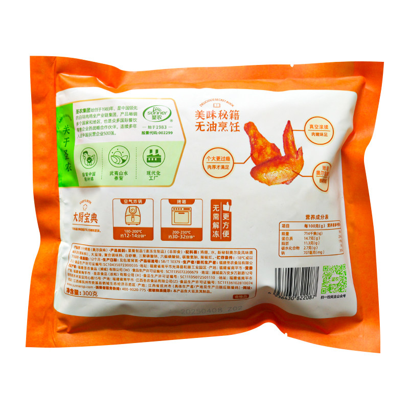 圣农汁汁烤翅奥尔良烤翅鸡翅冷冻半成品商用空气炸锅美食调理鸡翅
