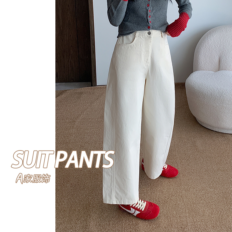 水洗棉灰色直筒裤女2025新款秋冬宽松高腰显瘦小个子九分休闲女裤