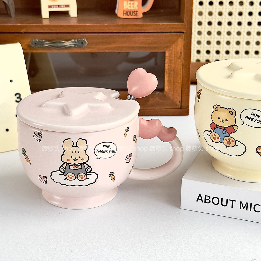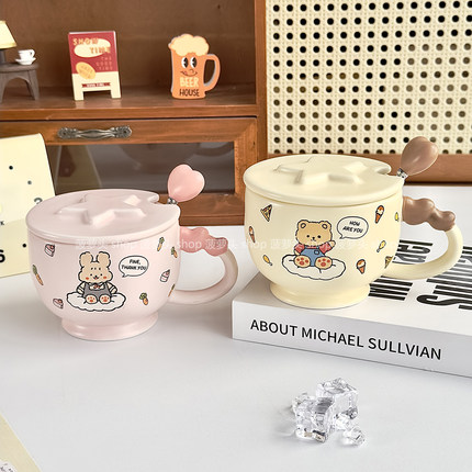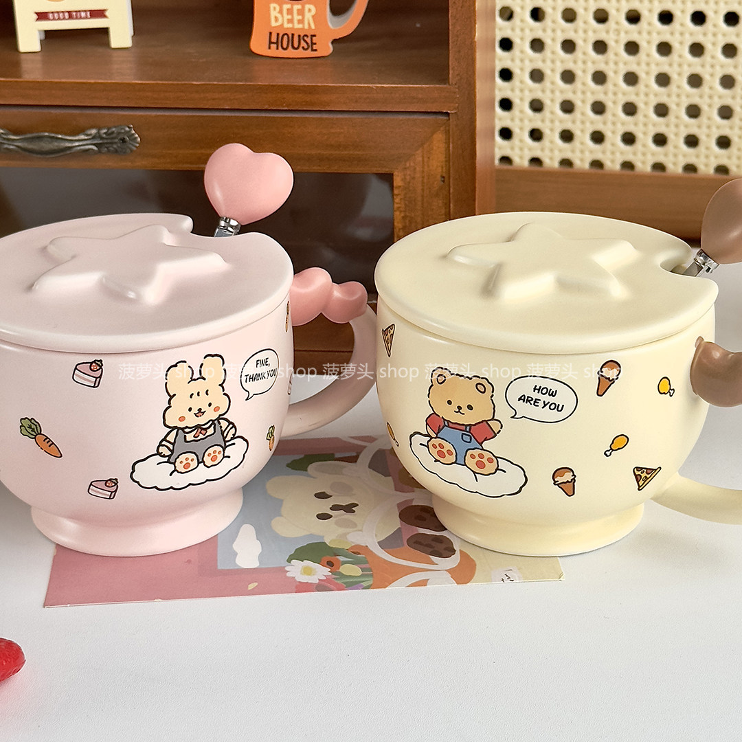 可爱小熊马克杯带盖勺陶瓷杯女生高颜值情侣水杯办公室杯子早餐杯