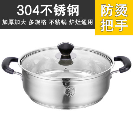 火锅锅304不锈钢平底汤锅加厚家用煮汤电磁炉专用锅26/28/30/32cm