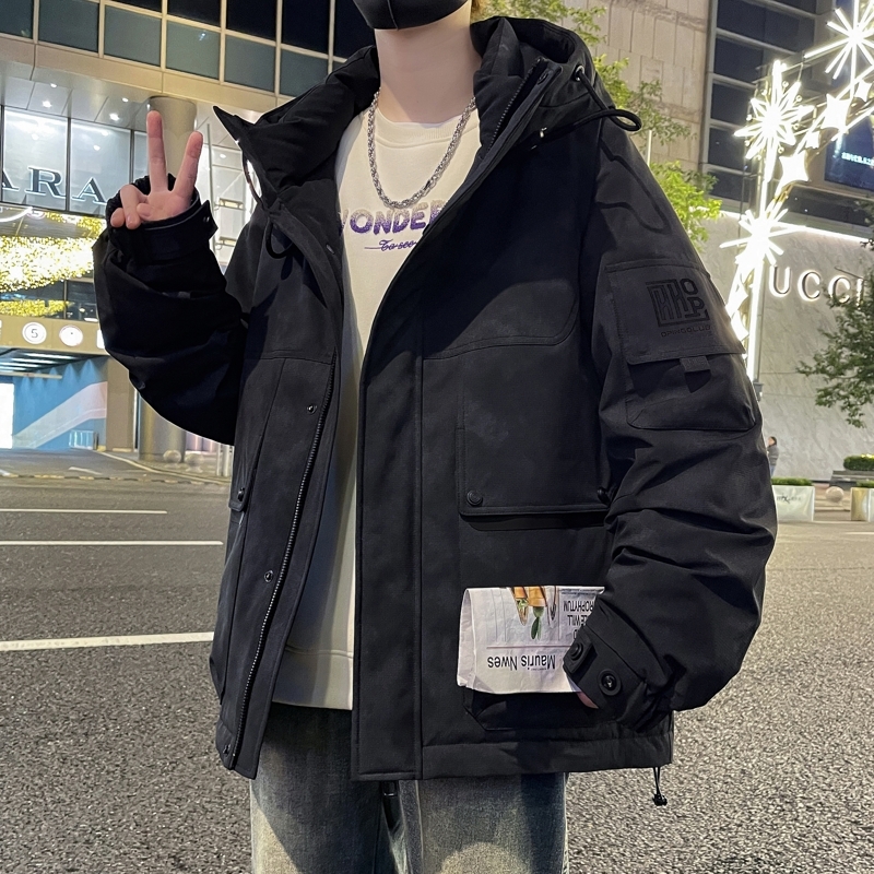 三防羽绒服男款冬季2025新款连帽外套加厚高级感青少年防寒服以純